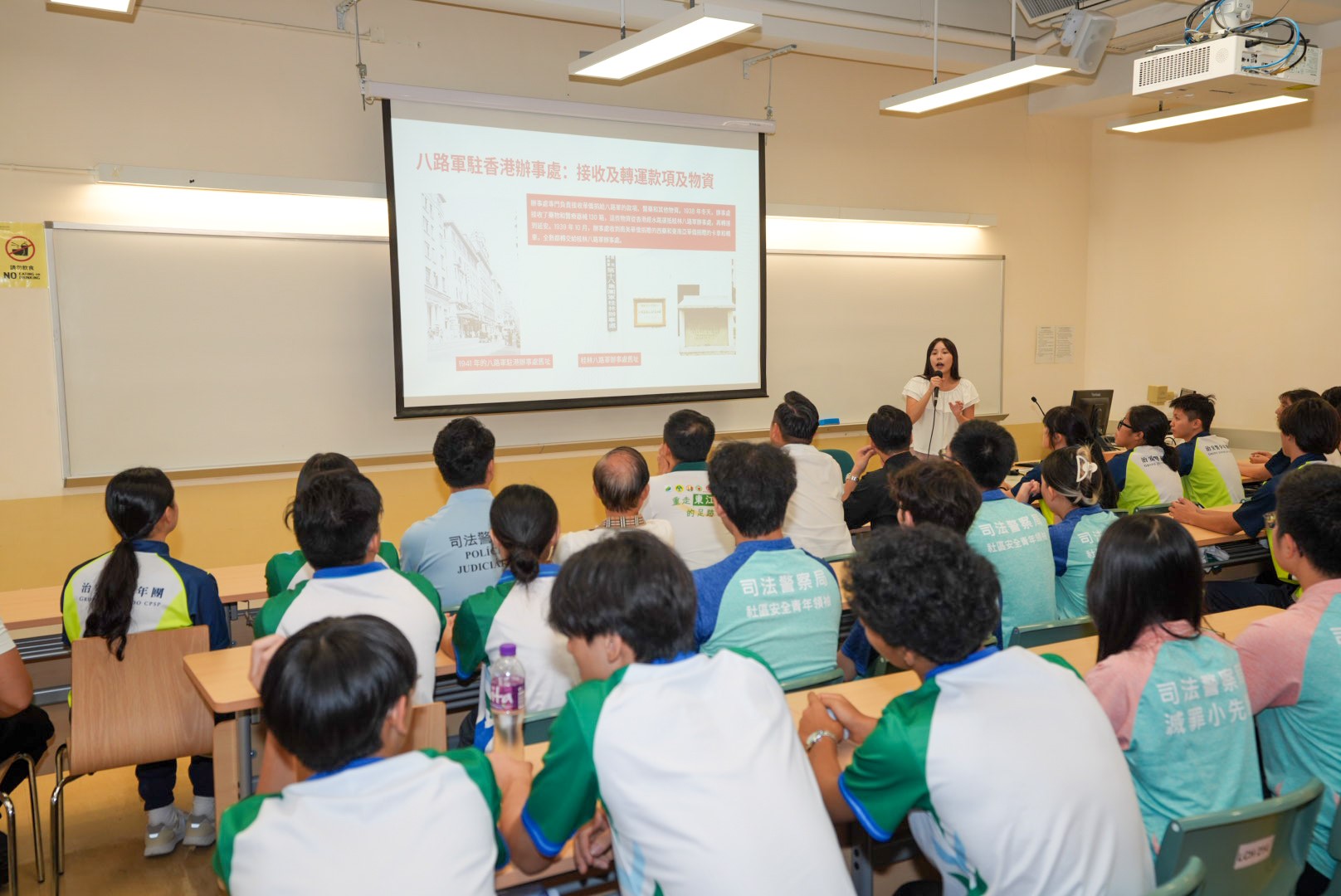 警察總局人員首先向學員講述民防工作的相關知識及情況,並透過民防演習影片,讓學員加深對民防體系及運作機制的認識。