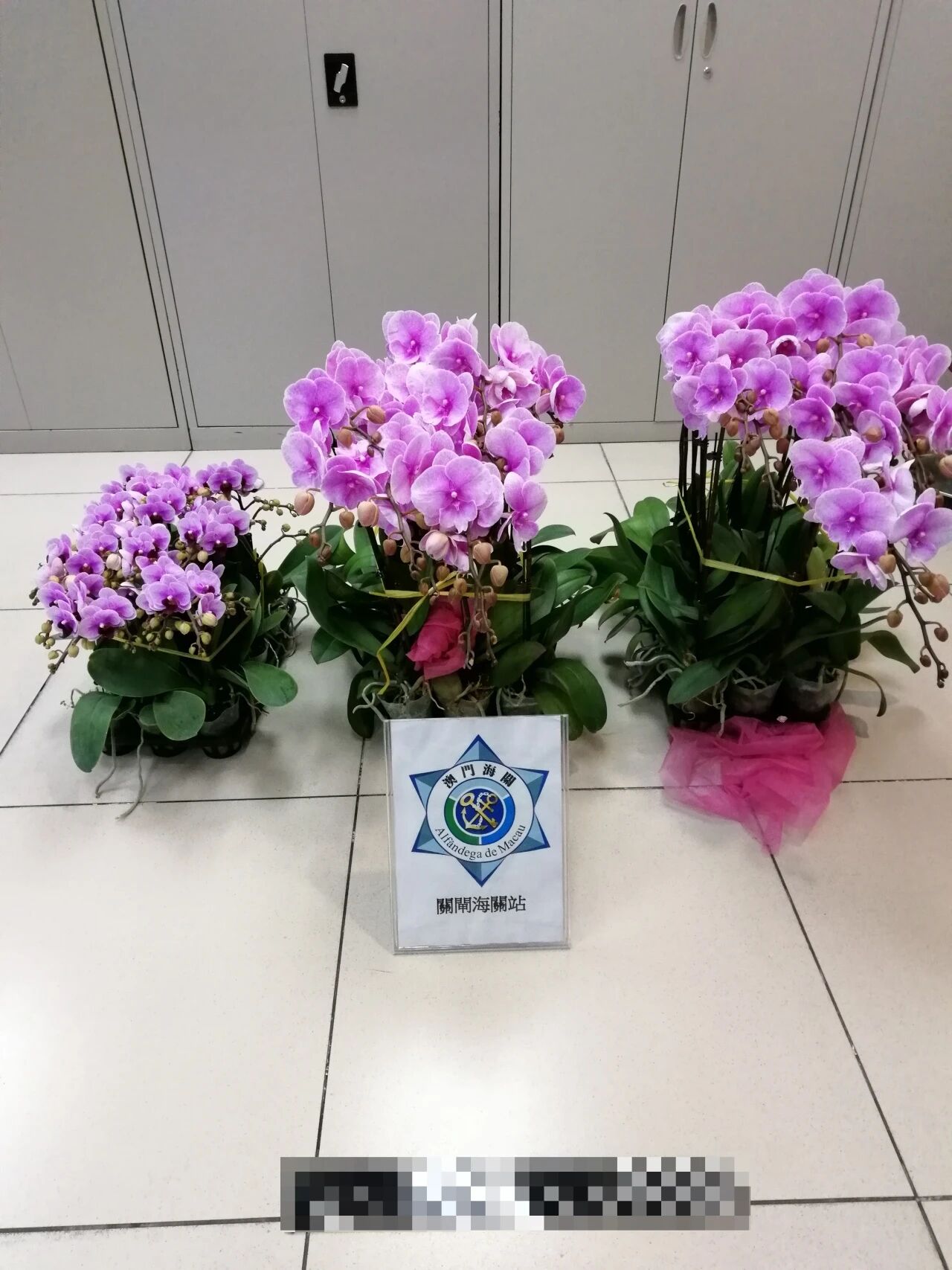 1月30日至2月5日,海關人員透過風險管理系統的預警佈控,在橫琴口岸、關閘口岸及港珠澳大橋澳門口岸入境車道分別截查四輛跨境車輛,駕駛者均為澳門居民,經檢查,發現該四人試圖將合共90.6公斤未經檢疫食材、20支紅酒、4支白葡萄酒及48株蘭花偷運入境。