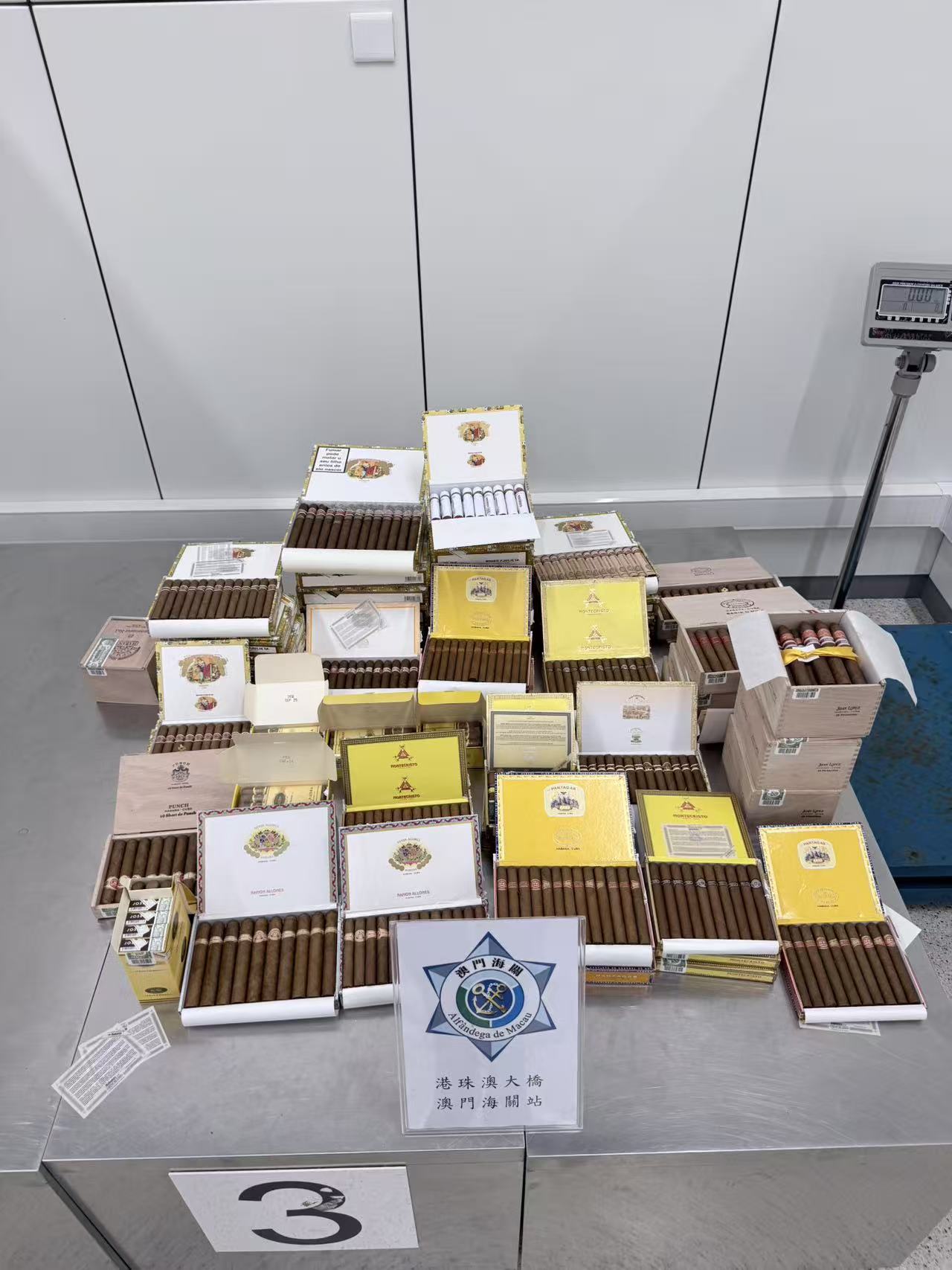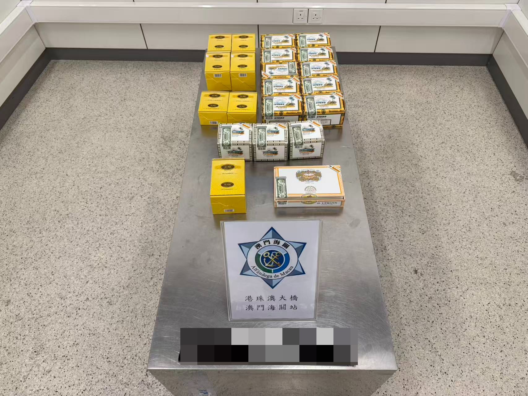 同一期間,海關人員在港珠澳大橋澳門口岸入境旅客檢查區,發現1名澳門居民及1名內地居民神情緊張,經檢查,發現該2人將合共約27公斤雪茄藏於隨身行李內,試圖將之偷運入境。