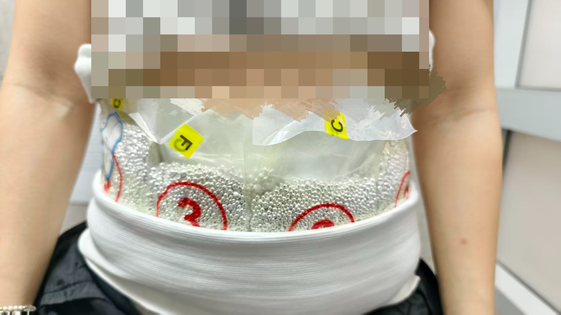 上述期間,海關人員在關閘口岸出境旅客檢查區,發現9名澳門居民、2名香港居民及6名內地居民形跡可疑。經檢查,該等人士將懷疑銀粒分別藏匿於日常用品、隨身物品、衣物及身體各處,試圖將之偷運出境。