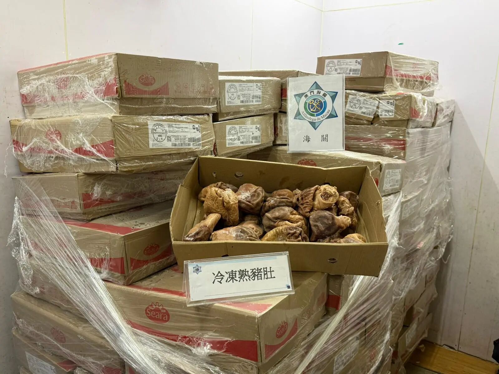 澳门海关根据“水客”活动态势,动态调整执法部署,加强市内巡查力度,持续打击相关不法活动。1月29日,海关人员在祐汉区一带发现一个怀疑“水客”活动散货点,即时对有关单位採取行动,查获约1,600公斤急冻熟猪肚,货物市值约48,000澳门元,一人涉嫌违法被查。