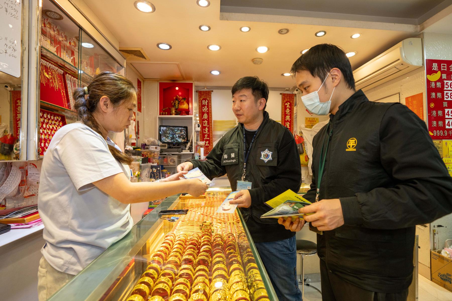 2月2日,海关联同经济及科技发展局到本澳市内店铺巡查,期间没有发现违规情况。随后海关人员向店铺负责人讲解保护知识产权的相关法规,并派发防罪宣传小册子,提醒业界应选择信誉良好的供货商,谨慎购货并保留发票,以免误购侵权商品再行出售,损害自身及消费者权益。