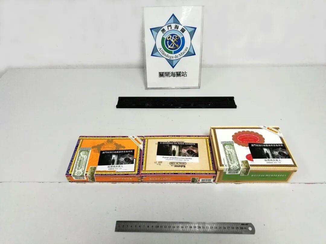 2月13日、15日及16日,海关人员在关闸口岸出境旅客检查区发现两名内地居民及一名澳门居民形迹可疑,经检查,发现该三人将合共约2.5升中国白酒、774克雪茄及35件旧电池藏于随身物品内,试图将之偷运出境。