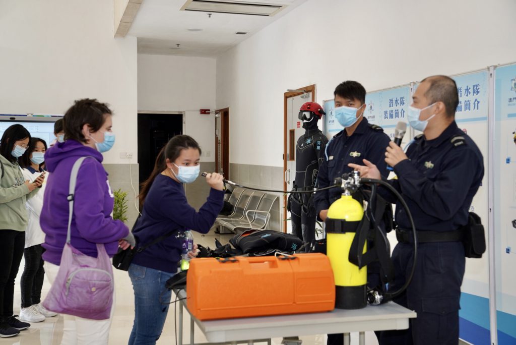 其後,海關人員向參觀者介紹船隊在海上方面的執勤工作,並就中央劃定澳門85平方公里管理海域的過程、打擊海上不法活動、以及海關與內地相關部門在海上執法方面建立的聯勤協作機制作講解,讓參觀者明白做好海域管理工作對維護國家及地區安全的重要性。由潛水隊人員講解在救援工作中常用的潛水用裝備、通訊設備、水陸兩用車、水上電單車及橡皮艇等設備的操作和應用;同時讓參觀者能近距離接觸,親身體驗。