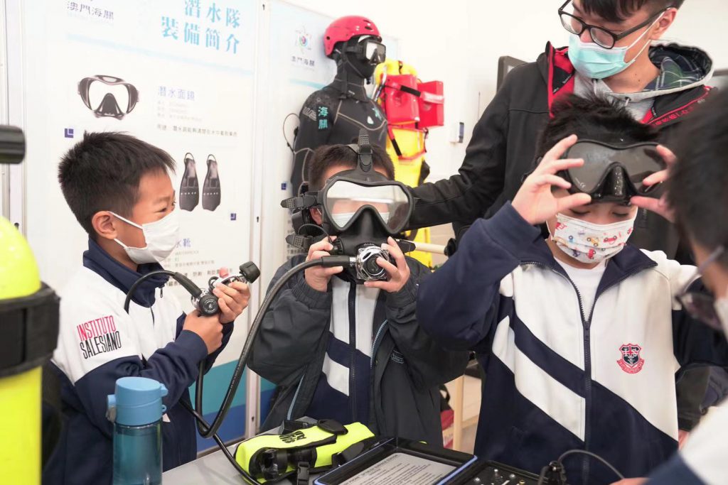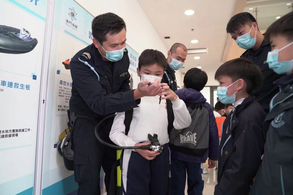 O verificador alfandegário da equipa de mergulho explicou a operação e utilização de equipamentos de mergulho, equipamentos de comunicação, veículos anfíbios, motas de água e botes de borracha utilizados em trabalhos de resgate, ao mesmo tempo, os visitantes poderam ter contacto próximo com os mesmos.
