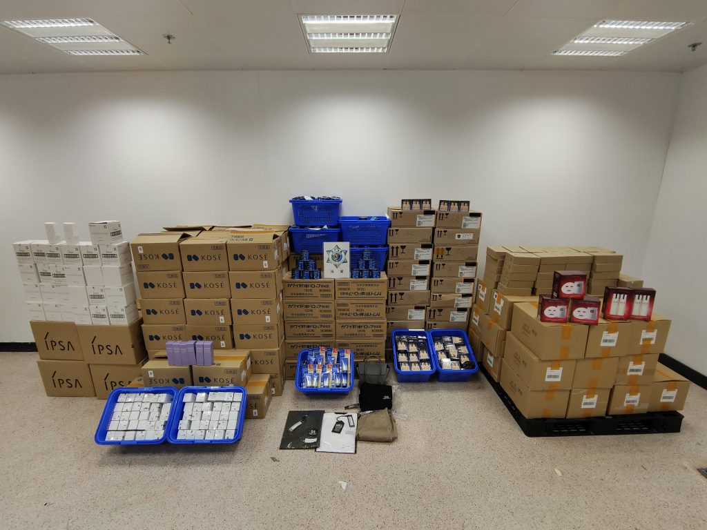 海关近日于关闸口岸查获的案件中,仍发现有部分人士从事水客活动,并在续后调查中发现有人收取报酬为水客团伙带货,海关遂针对有关团伙开展情报收集,并与治安警察局保持联络,交换信息资料,经分析相关情报后,锁定一间位于北区的店铺,于本月5日下午,海关见时机成熟,随即联同治安警察局采取行动。行动中,发现店铺内囤积大量货物,当中包括美妆产品、药品、衣物及手袋等,经点算缉获的货物合共3,798件,估值约160万澳门元,而现场有关人士被带返海关及治安警察局作进一步调查。