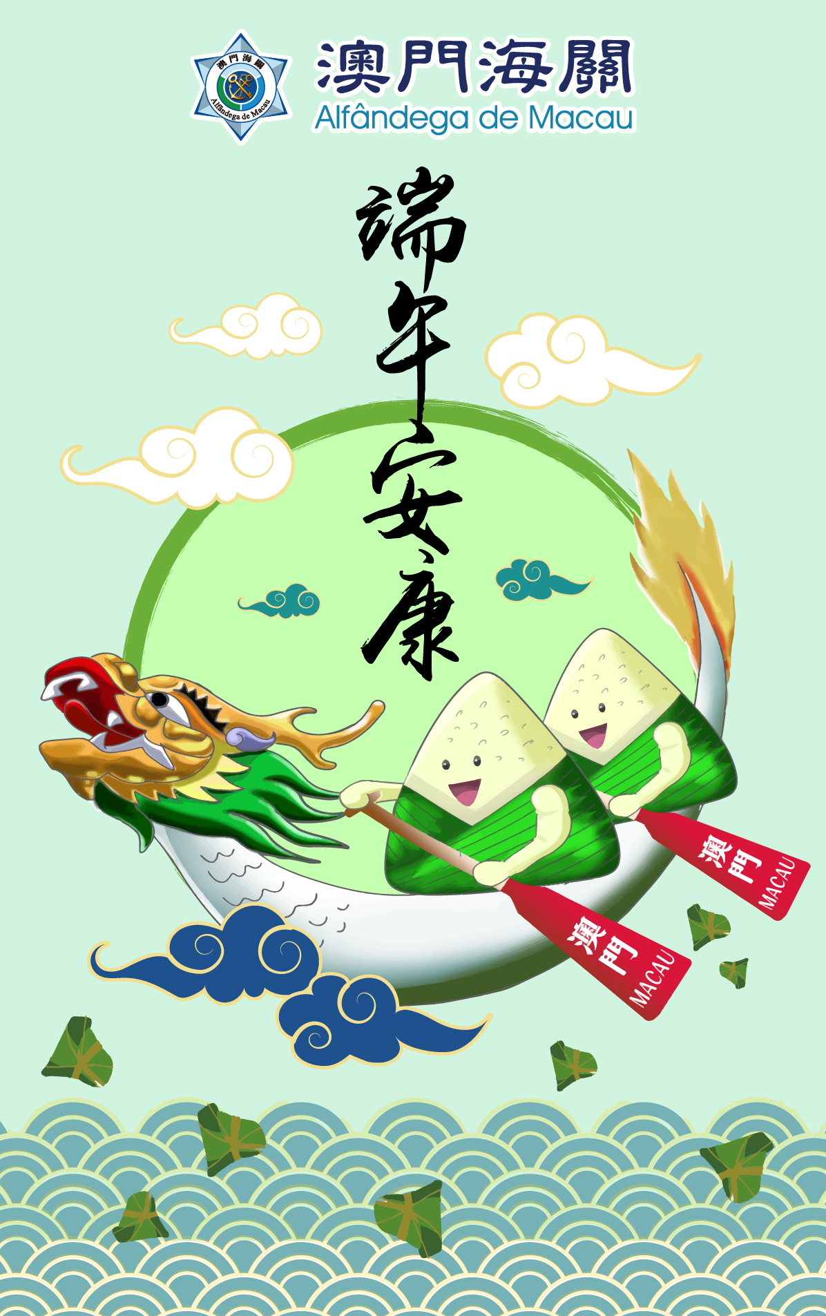 澳門海關用真心和暖意包顆粽子送給大家,裡面包裹著平安健康如意順境,並誠心與大家一起品嚐箇中濃濃的情意。