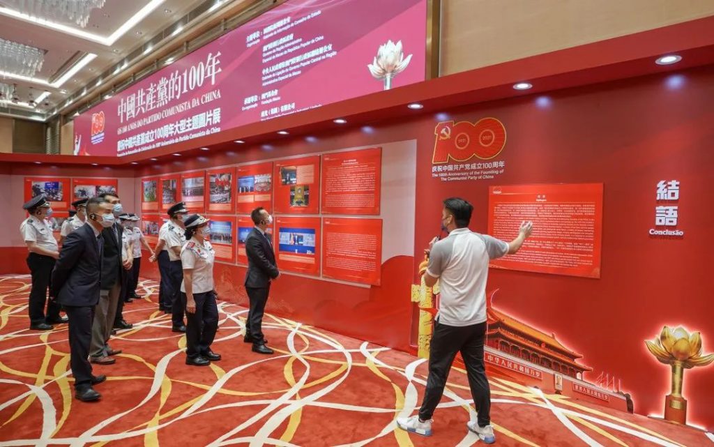 O Director-geral dos Serviços de Alfândega, Vong Man Chong, liderou, no dia 30 de Junho, um grupo de líderes e chefes alfandegários para visitar a “Exposição de Fotografias de Celebração do 100.º Aniversário do Partido Comunista da China” no Complexo da Plataforma de Serviços para a Cooperação Comercial entre a China e os Países de Língua Portuguesa.