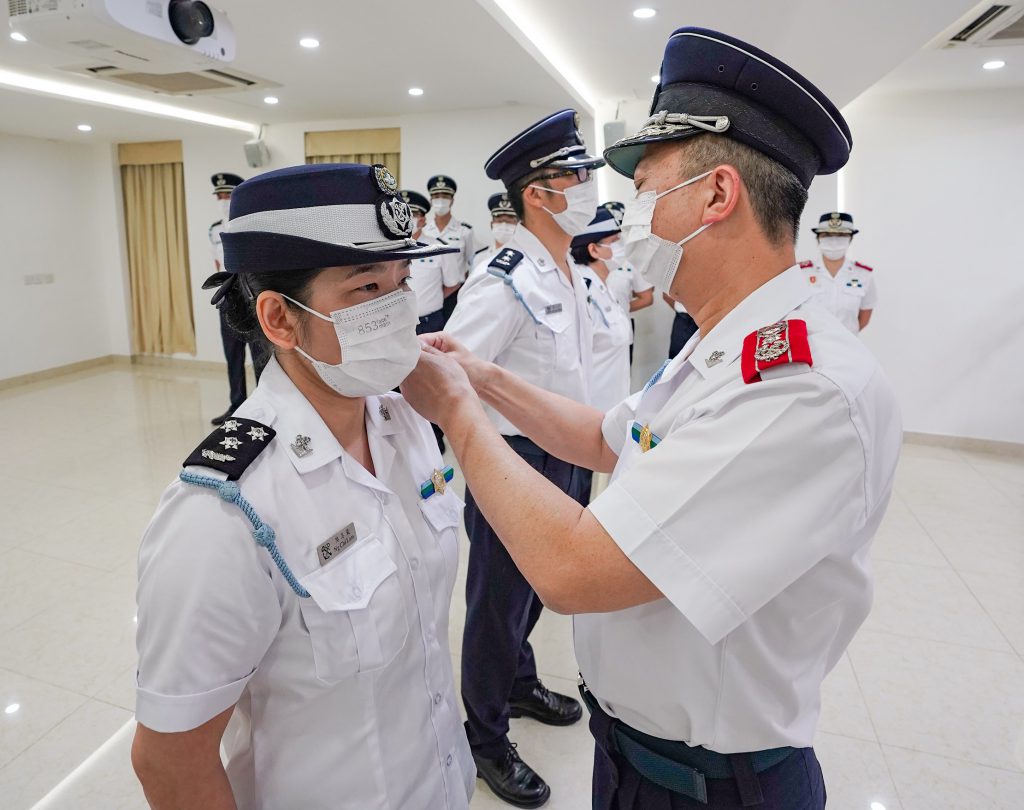 Após o juramento do pessoal promovido, o Director-geral, Vong Man Chong, colocou-lhes as novas platinas, os promovidos tomaram oficialmente posse de inspector alfandegário. Na utilização das palavras, o Director-geral, Vong Man Chong, elogiou as capacidades e o desempenho de cada um dos promovidos, desejando que os 3 venham a liderar os subordinados para avançar em conjunto mesmo com as dificuldades, e servindo bem os cidadãos com toda a disponibilidade e responsabilidade e com um espírito prudente e profissional.