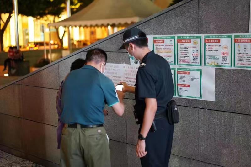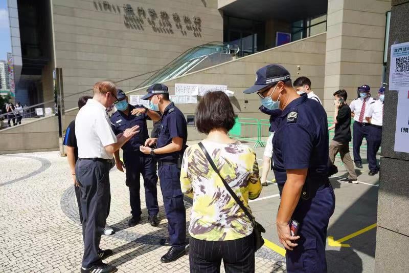 Além disso, Macau está a realizar o terceira ronda de colheta de amostras de teste de ácido nucléico, os SA cooperam plenamente com os trabalhos relevantes e enviaram o pessoal para os 6 postos de colheita de amostras em questão para manter a ordem no local, incluindo o Centro de Actividades do Patane, o Colégio Diocesano de São José, n.o 6, o Centro Cultural de Macau, o Terminal Marítimo de Passageiros de Pac On, a Universidade de Macau e o Posto temporário de teste de acido nucléico no Posto Fronteiriço Hengqin.