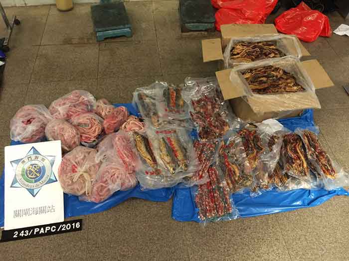 昨天(28日)下午約四時二十分左右,海關關員在關閘進境車道對一輛自內地返澳的兩地牌私家車作出檢查後,發現在其車內藏有一批未經檢疫食材,包括有已宰水蛇2袋共15公斤、臘肉40公斤、醃製魚10公斤、醃鵪鶉4公斤及臘腸1公斤,涉事司機聲稱上述物品屬其本人所有。海關已依法起訴涉案司機,並將未經衛生檢疫的食材交民政總署處理。