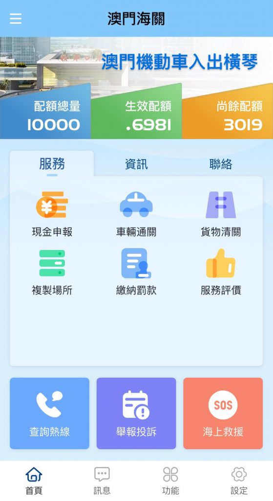 市民可於該應用程式中申辦海關各項網上服務,包括“大額現金申報”、“車輛通行證”、“清關易”、“繳納罰款”等。同時,亦可查閱各陸路口岸跨境車輛通關流量,靈活安排出行。此外,程式中亦為海上作業和活動人士提供“海上救援”緊急求助功能,讓有需要人士致電求助時,海關能即時獲悉求助者座標位置,可以精準、快速地作出搜索,從而有效提升海關的海上救援能力。