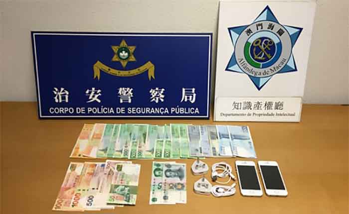 澳門海關與治安警察局在五一勞動節假期期間加強巡查打擊街頭售假的騙案,於五月二日傍晚,治安警察局第一警務警司處警員在澳門南區執勤時,發現一名男子不斷向途人兜售手提電話,隨即上前截查,發現該名男子共有兩部涉嫌侵權手提電話,其後轉交海關知識產權廳跟進調查。經初步調查,發現該男子藉以旅客身份來澳作案,之後將會送交檢察院處理。