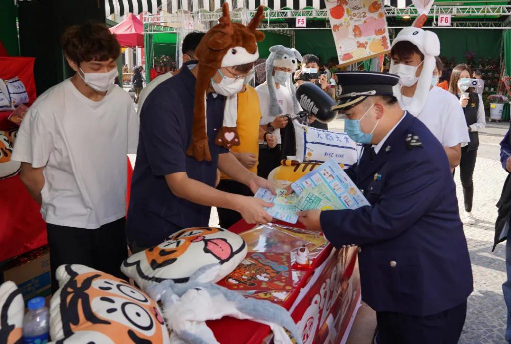 A “Operação de Prevenção Criminal no Período de Inverno 2022”, sob a organização dos Serviços de Polícia Unitários, continua a realizar-se. Em virtude de assegurar o direito e interesse do consumidor e defender a imagem de cidade turística de Macau, os SA em conjunto com a Direcção dos Serviços de Economia e Desenvolvimento Tecnológico, o Conselho de Consumidores e o Instituto para os Assuntos Municipais inspeccionaram e divulgaram na feira do Ano Novo Lunar do Tap Seac para combaterem a actividade de tráfego e venda de produtos violadores de direitos e manter a ordem do mercado.