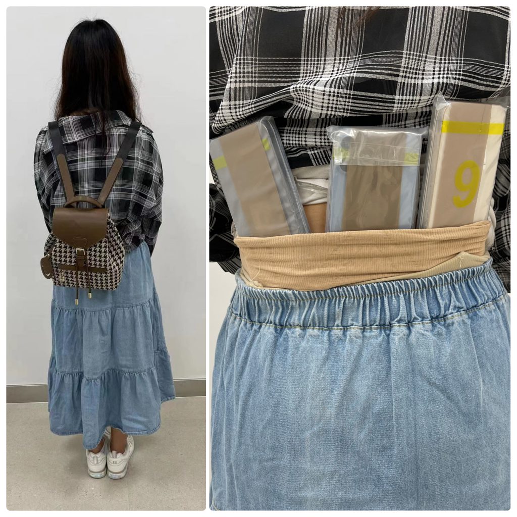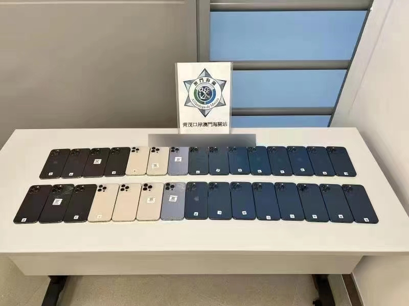 12日傍晚,关员在青茂口岸出境旅客检查区发现一名通关女子神色可疑、步履异常,怀疑其身上藏有可疑物品,遂指示该名女子接受检查。经关员使用手提式金属探测器对其进行严格检查后,揭发该名女子利用特制腰封及内裤将手提电话绑藏于腰间及大腿内侧,试图偷运出境,案中共查获旧手提电话合共30部。