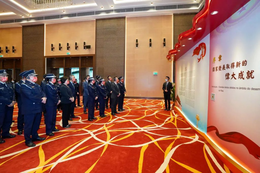 澳門海關關長黃文忠、副關長周見靄、助理關長李煜輝及助理關長(代任)譚燕雯率領海關各單位主管共30人,於20日前往中國與葡語國家商務合作服務平台綜合體參觀“全民國家安全教育展”。