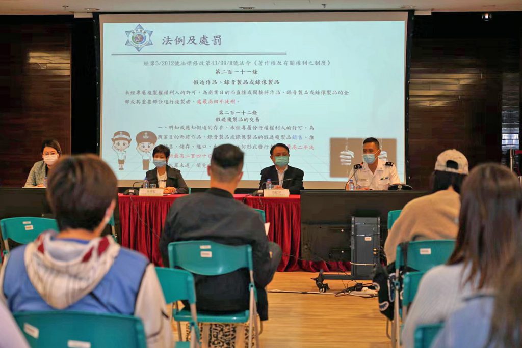 為向新生代宣揚保護知識產權的重要性,促進青年的守法意識,海關聯同經濟及科技發展局於2021年5月31日及11月17日,分別到浸信中學及氹仔坊眾學校舉辦「保護知識產權講座」,向學生講解相關法律知識,呼籲學生支持原創,拒絕盜版。
