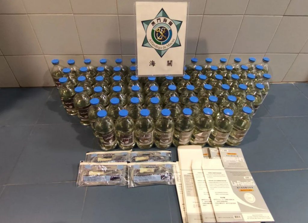 根据情报显示,海关怀疑北区某工厦内有水客团伙从事非法活动,连日对其进行监察及情报搜集,经部署后于27日早上对该工厦单位采取突击行动,在现场缉获64箱共重2,100公斤食材(牛柏叶)及62件氨基酸注射液,总值约8万澳门元。