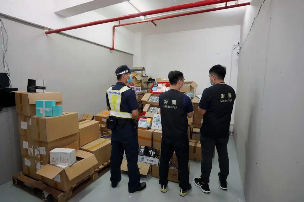 海关根据接获的举报资料,怀疑北区某工厦内有水客团伙涉嫌非法聘用人员,将货物以「蚂蚁搬家」形式分批经关闸口岸运送出境,海关经连日监察,发现两个目标工厦单位有数个监控镜头,具反侦查能力,增加海关人员执法难度,于28日傍晚海关人员见时机成熟,借不法分子有所松懈,立即对上述目标单位采取突击行动,在现场缉获美妆产品2,453件、旧手提电话及旧手提电脑共349部,总值约195万澳门元。为减低新冠病毒传播风险,海关对所有涉案货物进行消毒。