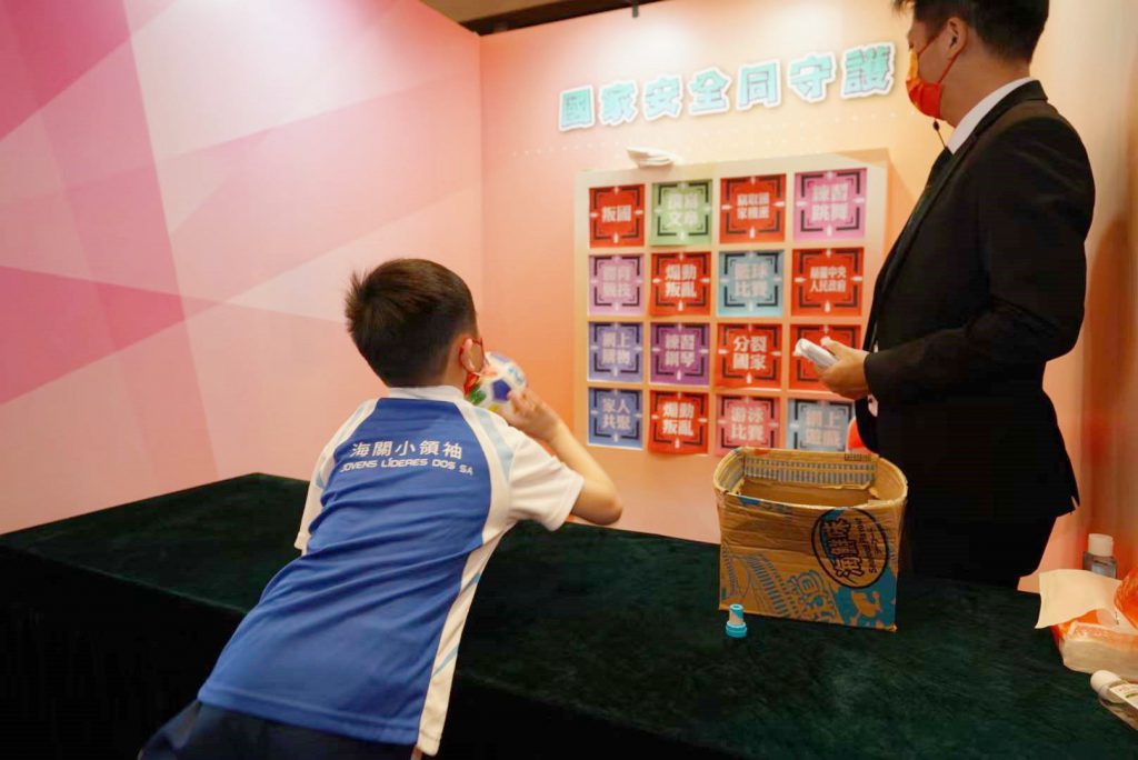 一众「海关小领袖」及「守正之星」成员在导赏员的介绍及讲解下,参观“国家发展取得新的伟大成就”、“坚持总体国家安全观,国家安全体系不断完善”、“新时代国家安全成就突出,着力防范化解重大风险”、“强基固本,迎难而进,推动“一国两制’稳步向前”、“努力进取,奋发有为,积极融入国家发展大局”以及“爱国爱澳,薪火相传,齐心合力维护国家安全”六部分内容,期间观看了国家安全教育短片及参与互动游戏,令青少年对国家安全有更深刻的了解,进一步提升爱国爱澳意识。