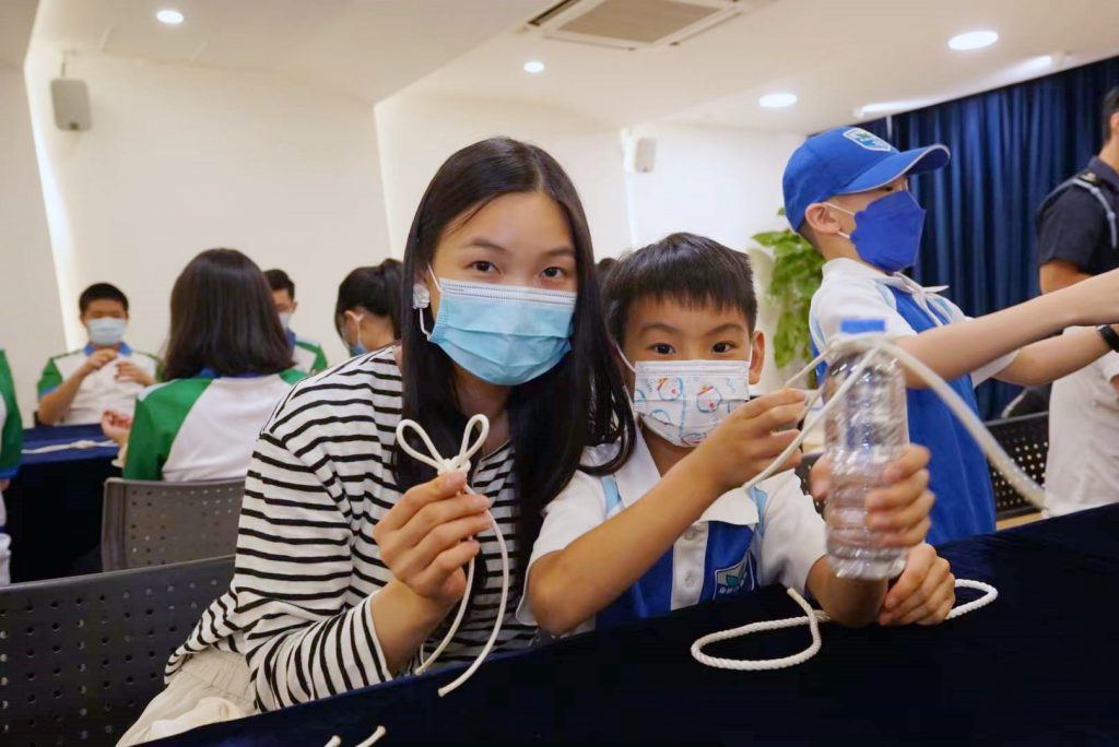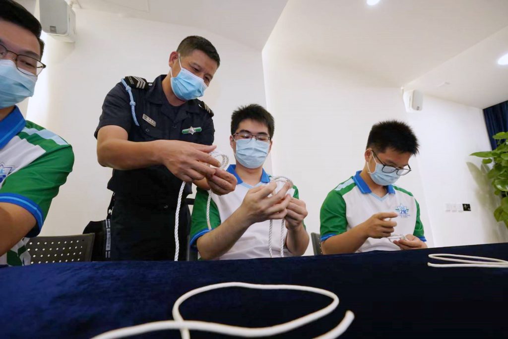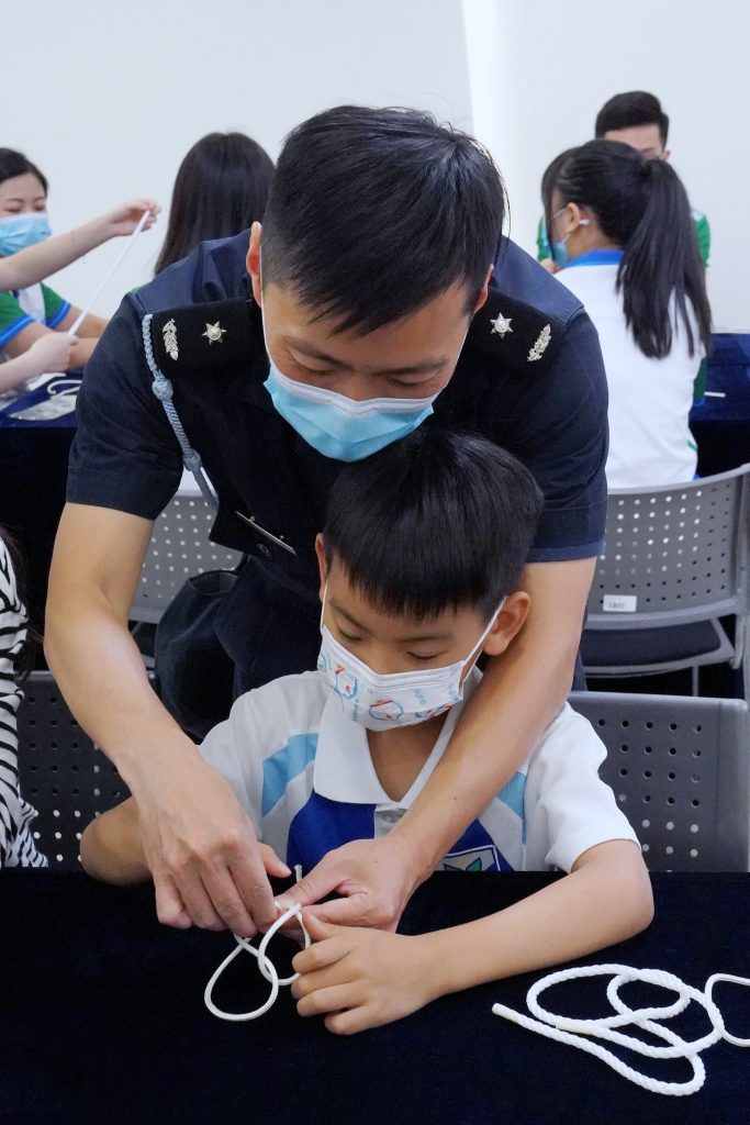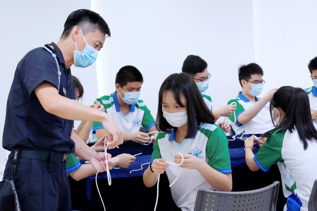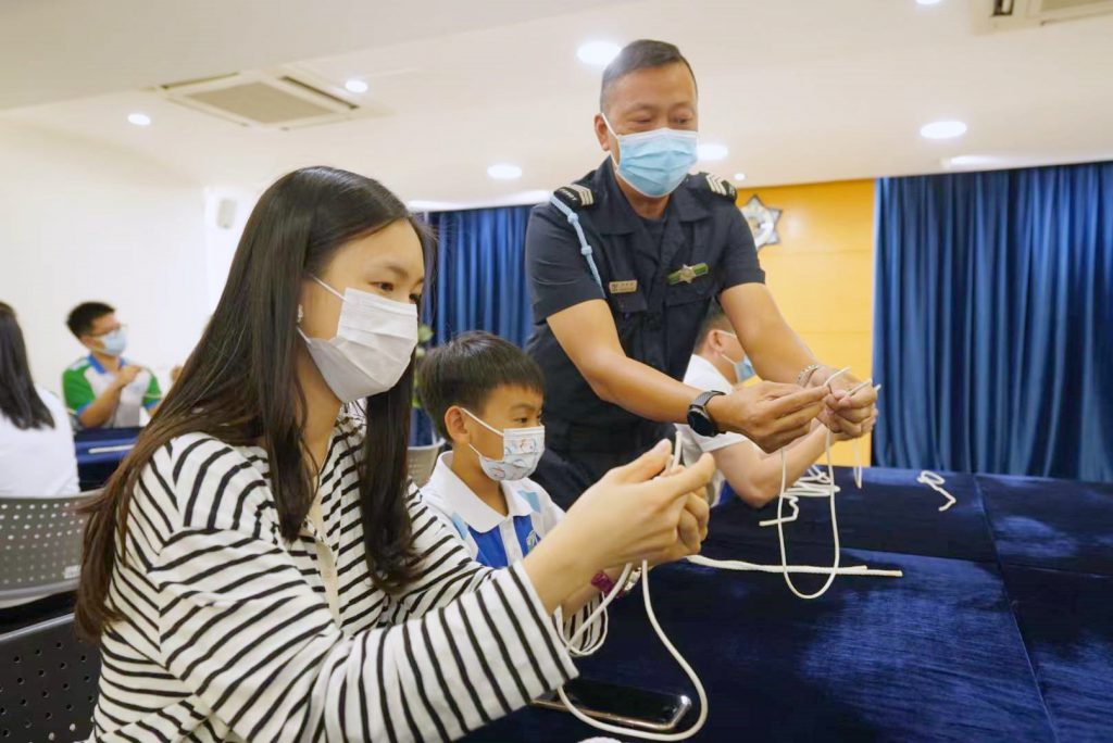 在参观国安展后,「海关小领袖」及「守正之星」成员返回海关总部学习绳结技巧。海关人员向他们教授绳结的打法,讲解不同绳结在海关执勤中的应用。青少年们对绳结饶有兴致,在海关人员教学下专心学习,最后展示绳结成果。