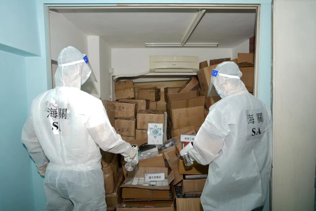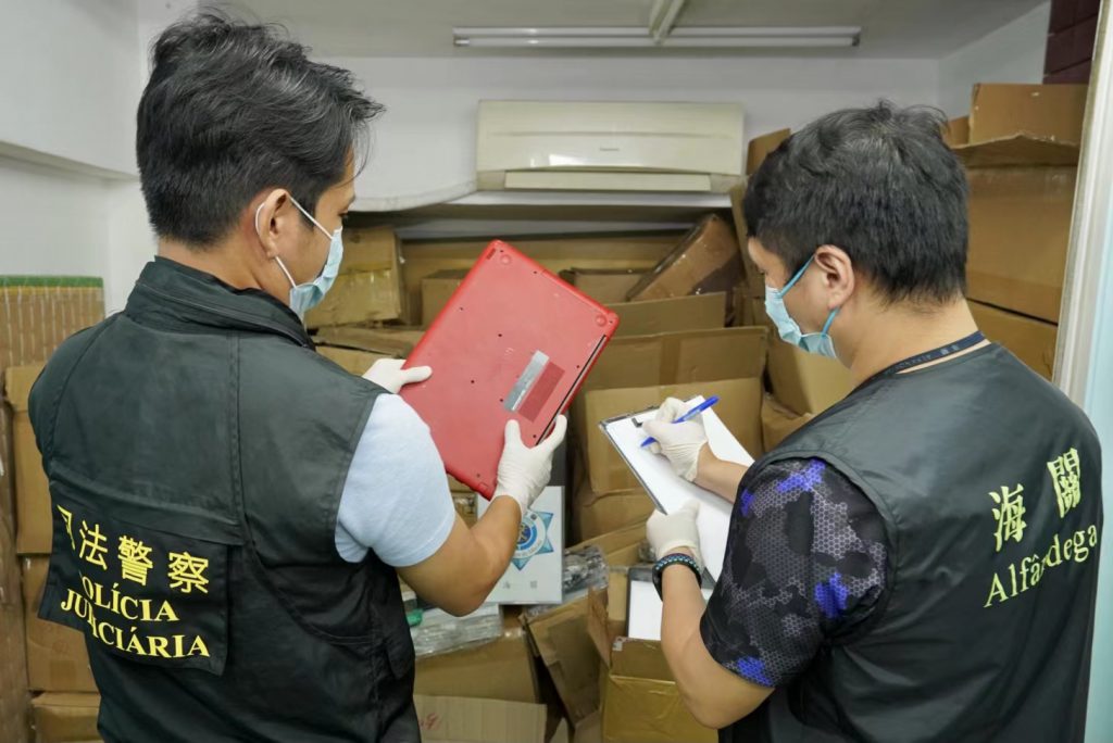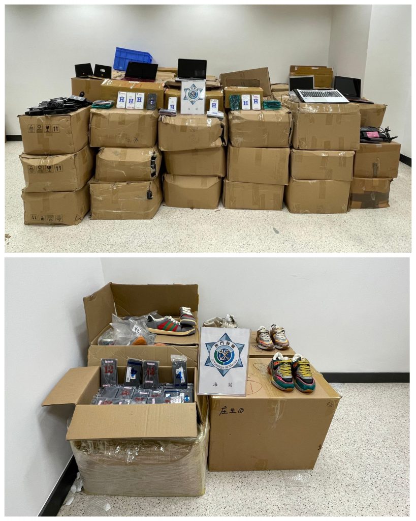 司法警察局早前接获举报,怀疑有不法分子利用台山某单位进行水客活动,并将受管制之咳药水及电子烟等物品交予中学生带往内地,司警局遂透过联络机制与海关交流相关情报。两部门连日对有关单位进行监察,发现其位置隐蔽,且有人负责把风,具备一定的反侦查能力,增加了打击工作的难度。于16日下午,该单位有进行水客活动的迹象,而海关亦同时于关闸出境旅客检查区截获4名较早前离开涉案店铺之学生,均承认协助该单位带货,两部门见时机成熟,立即采取行动,于地铺及阁楼缉获大批未申报货物,包括旧手提电话、旧电子产品及休闲鞋,合共6,244件,总值约214万澳门元。为减低新冠病毒传播风险,海关对所有涉案货物进行消毒。