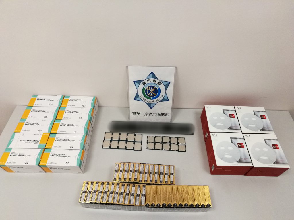 緝獲貨物包括美妝產品1,281件,電腦處理器476件、遊戲光碟54件、電子遊戲卡32件、無線耳機4件、舊手提電話110部、舊手提電腦2部、其他電子產品 4件、燕窩2.7公斤、乾花膠3公斤、乾魚翅3.5公斤、藥物41件、眼藥水144件、其他醫藥用品20件、酒類5.5升及香煙200支。