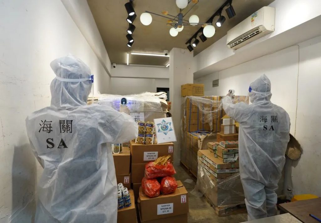 經點算後,緝獲貨物包括即食罐頭(蝸牛)共1,177罐、驅蚊液910支、寵物飼料4,675件、舊電子產品440件、美妝產品327件、保健品199件、嬰幼兒奶飲料152件及乾花膠25包,貨物總值約60萬澳門元。