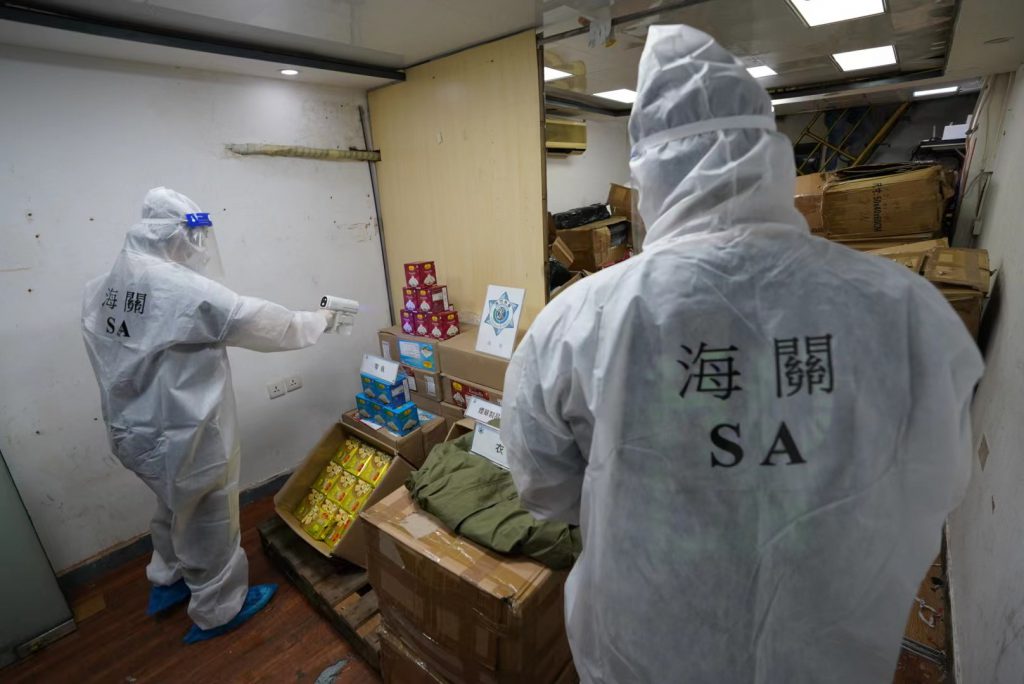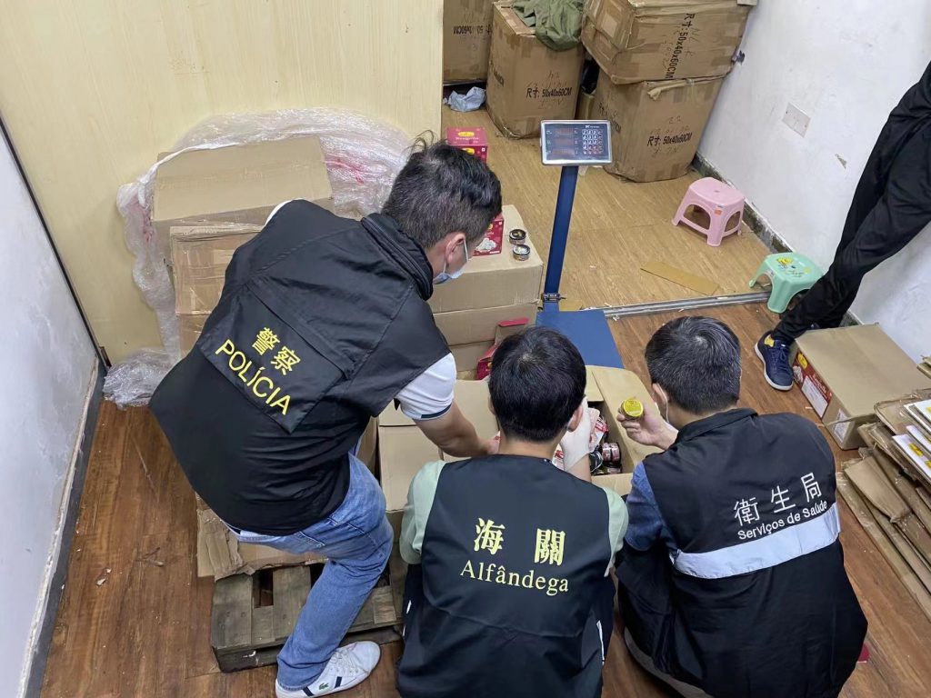 根據情報資料顯示,懷疑有不法分子在三角花園附近店舖內從事水客活動,海關聯同治安警察局隨即展開行動部署,派員連日對上述地點進行監察。23日下午,海關人員發現有3名男子從目標店舖步出並向關閘方向離去,關員在關閘出境行李檢查區對其截查並查獲美妝產品及零食。經調查後,上述人士承認在蓮峰街一間店舖內取貨後攜帶出境。海關見時機成熟,即時聯同治安警察局採取行動進入該目標店舖,在店舖內發現1名現場負責人及1名員工,並查獲煙草製品118件、零食298件、衣服227件及生活用品442件,貨物總值約10萬澳門元,涉案煙草製品已移交預防及控制吸煙辦公室跟進。為減低新冠病毒的傳播風險,海關執行防疫指引,對涉案貨物進行消毒。