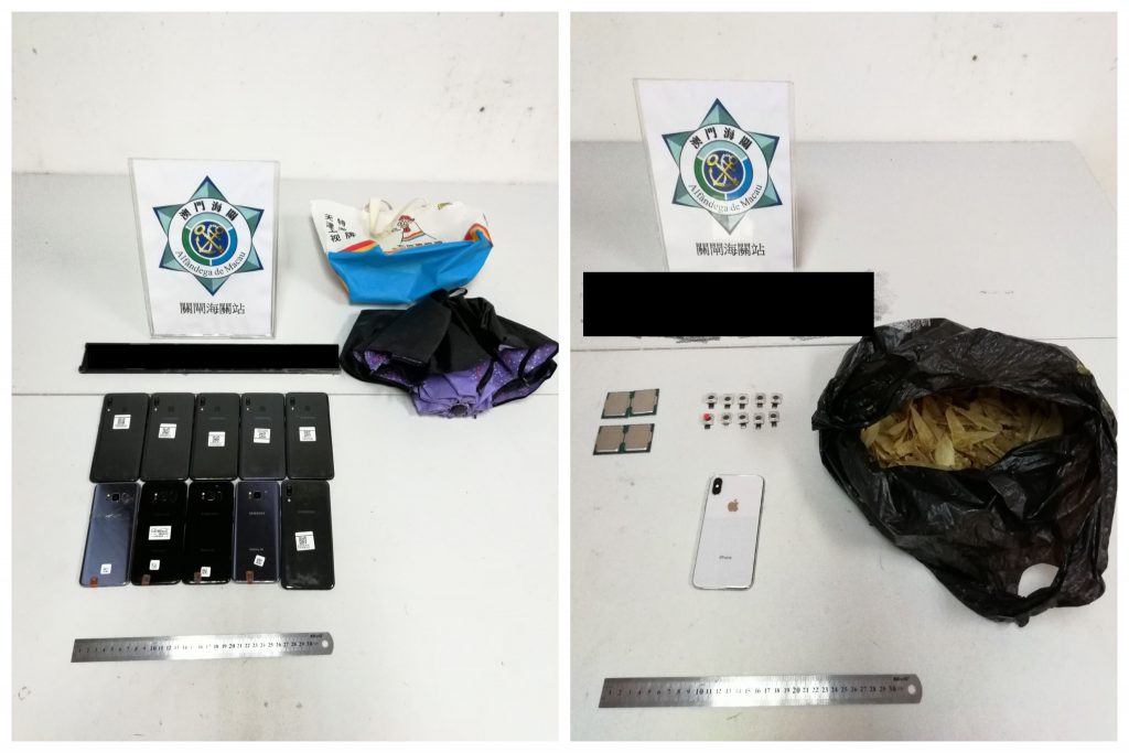 Além disso, na noite de 14, o verificador alfandegário avistou, na área de inspecção para os passageiros de saída no Posto Fronteiriço das Portas do Cerco, um indivíduo do sexo masculino que estava esconder 10 unidades de telemóveis usados num guarda-chuva com a intenção de os transportar para o Interior da China.