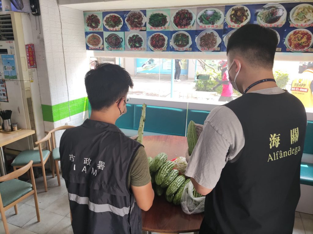 Os SA realizaram ainda, em conjunto com o IAM, durante o período de 13 a 15 do corrente mês uma acção conjunta de 3 dias no sentido de proceder a investigação na cidade em relação às lojas e aos estabelecimentos alimentares suspeitos de recolher, vender e utilizar alimentos não inspeccionados e a vigilância aos indivíduos suspeitos de transportar os alimentos não inspeccionados para Macau. Durante a acção, foram descobertos 2 estabelecimentos alimentares localizados, respectivamente, na Rua de Malaca em Macau e na Estrada Governador Albano de Oliveira na Taipa, suspeitos de recolher alimentos não inspeccionados e vendê-los após o procedimento de transformação, foram interceptados na acção, no total, 25 quilos de alimentos não inspeccionados. O IAM elaborou já as acusações contra os 2 responsáveis das lojas em questão suspeitos de infringir as disposições da Lei de Segurança Alimentar.