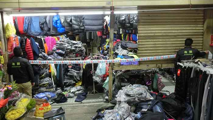 第二及第三宗案件于二十六日,知识产权厅的关员对中区一带店铺进行巡查,发现新桥区两间店铺涉嫌售卖假冒名牌服装。关员迅即采取行动,即场缉获多个知名品牌服装,合共一千零六十二件。一名本澳区姓男子及一名本澳冼姓女子为这两间店铺的负责人,被带返海关总部调查,其供称货物从内地购入,购入价每件约人民币一百元,以二百元澳门币出售图利。经品牌权利人鉴定涉案物品确认为假冒产品,该批货物估值约二十一万澳门元。