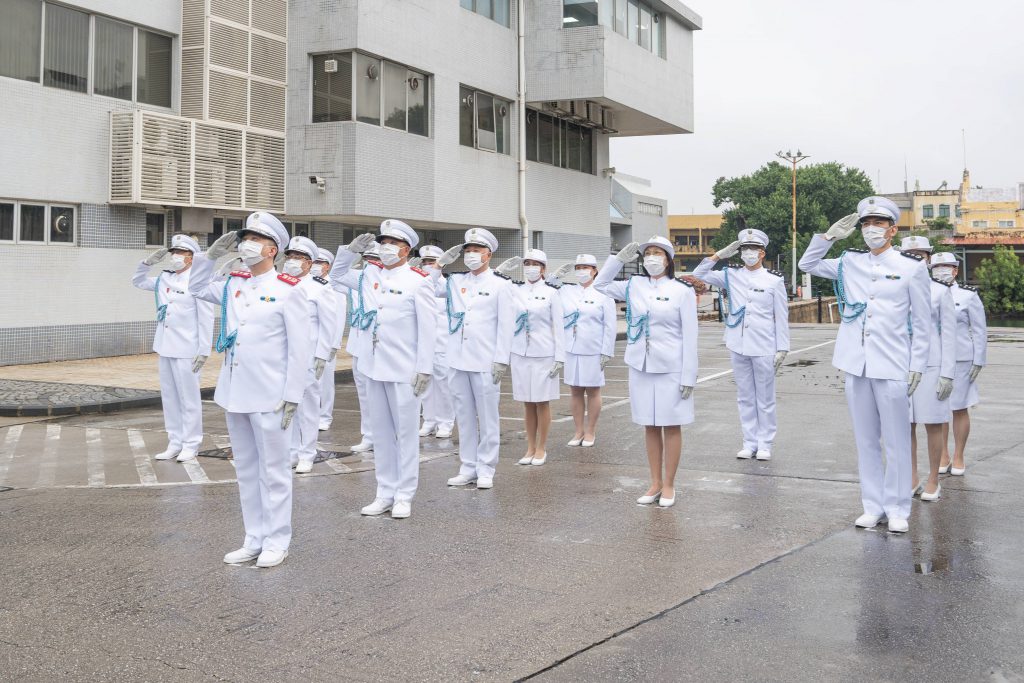 仪式在严格遵守防疫措施下进行,海关关长黄文忠率领一众领导及主管人员出席在海关总部举行的“海关日”升旗仪式。