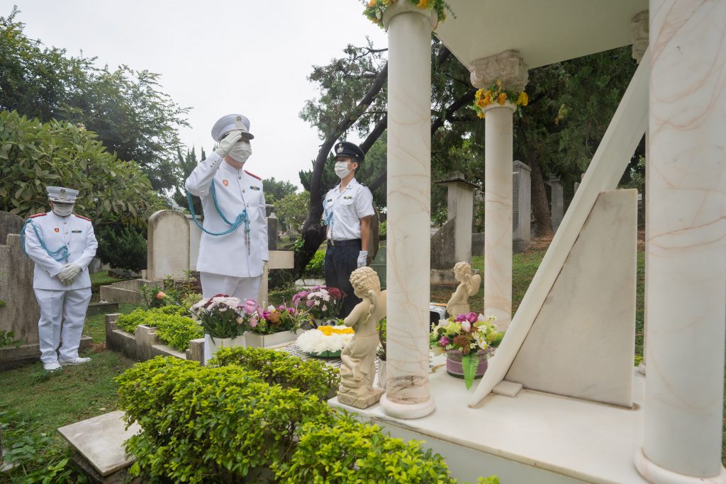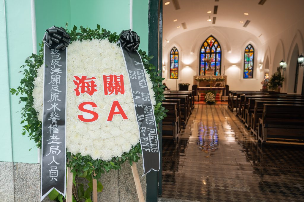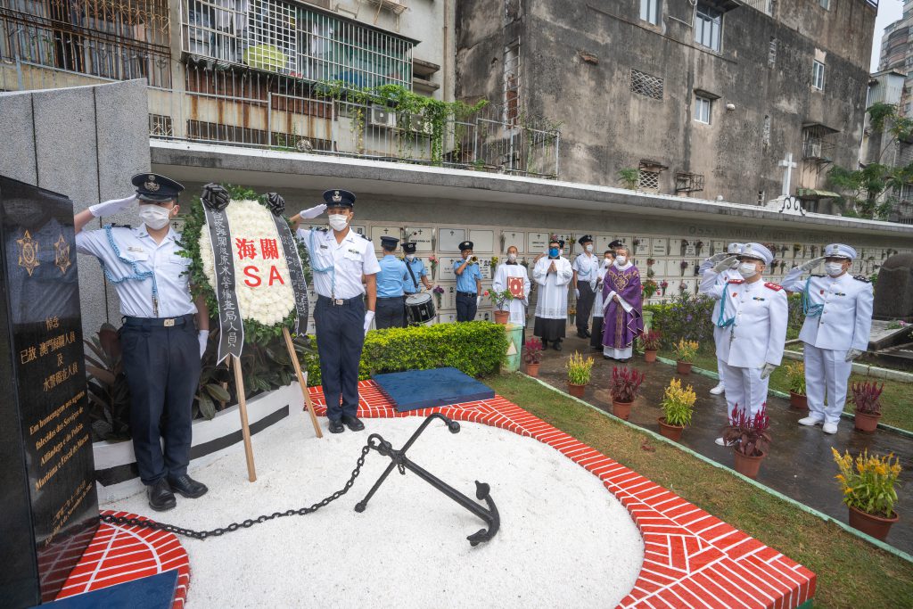 升旗仪式完结后,海关关长黄文忠带领一众人员前往圣味基坟场进行追思弥撒,向已故海关人员及水警稽查队人员的纪念碑致上花圈,以悼念有杰出贡献或因公殉职的人员。