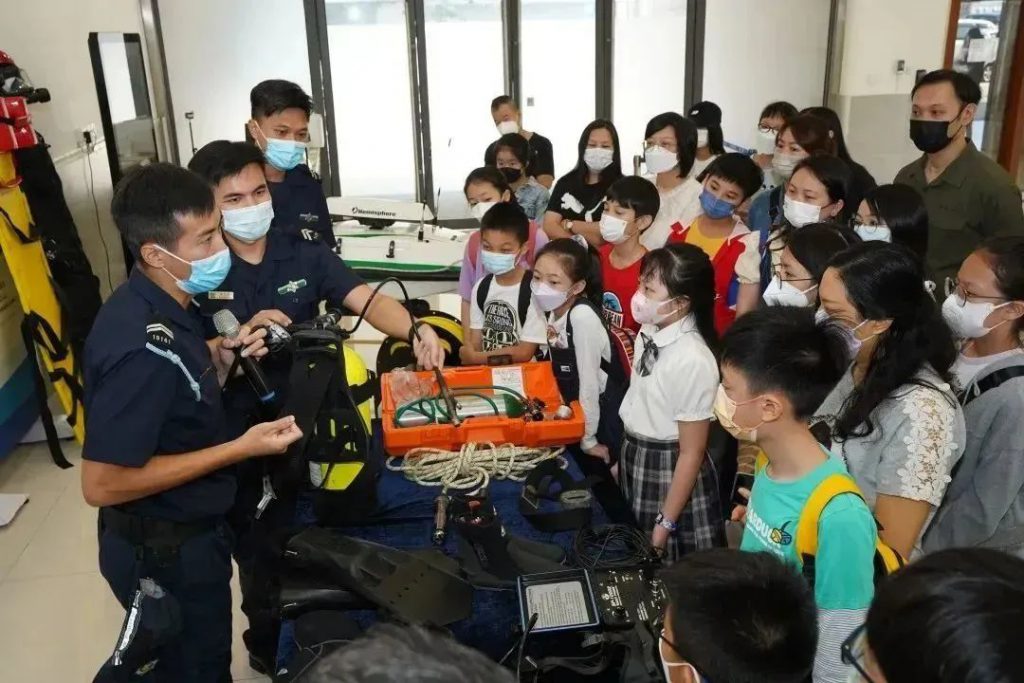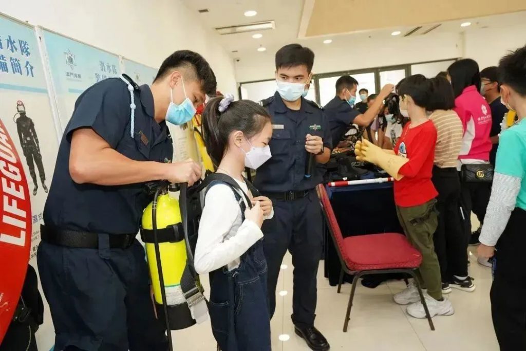 活動期間,潛水隊人員講解海上執勤及救援工作中常用的潛水裝備、通訊設備、水陸兩用車、水上電單車及橡皮艇等設備的操作和應用,並讓參觀者近距離接觸和親身體驗。