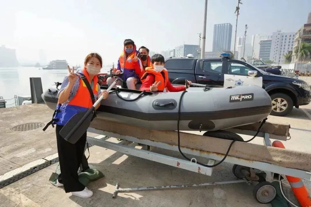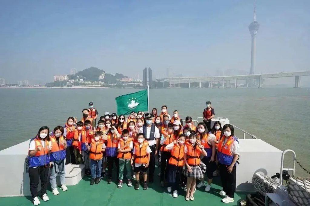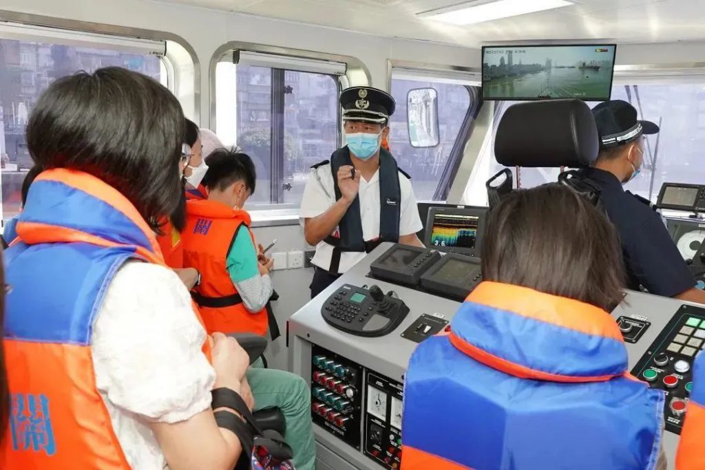 隨後,一眾參觀者在海關人員的帶領下登上海關巡邏船出航。期間,海關人員講解船上各類科技設備的應用,讓參觀者能夠親身體驗海上巡邏工作,藉此瞭解澳門管理海域的狀況。