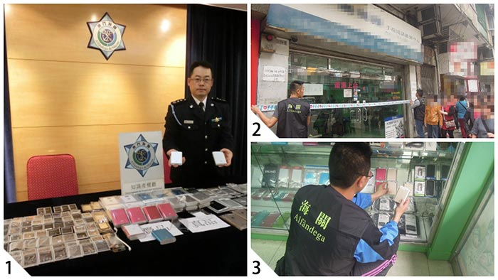 于三月十八日,海关知识产权厅侦查人员在经过长期监察及收集资料后,对举报所指的电讯店铺采取突击行动。在行动期间,获得相关品牌权利人全力协助侦查关员作出稽查行动,并在位于中区某电讯店铺内查获多个怀疑假冒知名品牌商标的手机配件包括有:「小米」、「APPLE」及「SAMSUNG」品牌手机配件。配件有移动电源、手机电池及手机触屏等,合共一百四十八件。据初步调查显示,有关货物经嫌犯从外地订购,有人声称手机配件的入货价格为十至四十元人民币不等,出售价格为三十至一百七十澳门元。例如:「小米」移动电源的入价为二十五元人民币,而售出价即为一百五十澳门元,所有扣押物若以正价出售约为两万澳门元。上述物品经核实,其品牌商标已在澳门特区政府经济局作出合法注册登记,除由海关侦查人员在现场作初步认别外,并得品牌权利人代表作初步鉴定,核实涉案物品从配置、工艺、用料、质量、手工及卷标等作比较,均与正品不一,并确认为假冒货品。