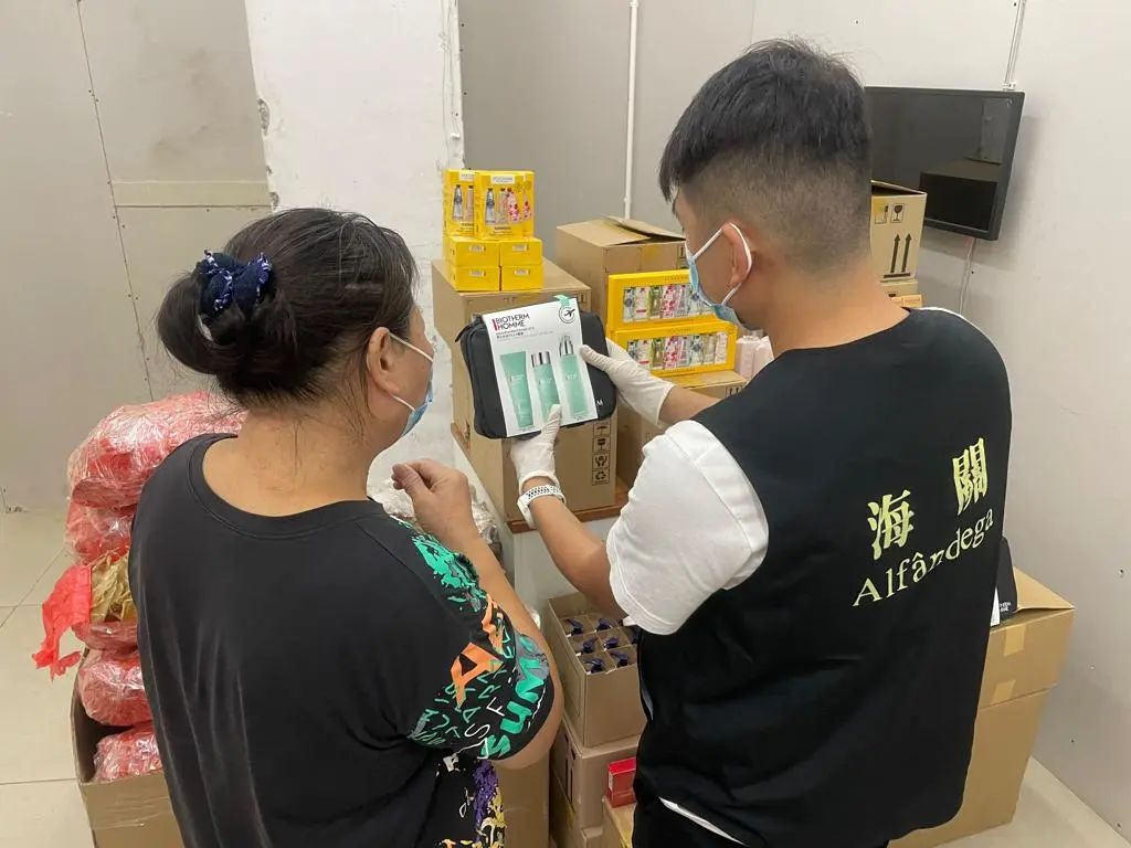 De acordo com a informação retirada dos dados fornecidos, suspeitou-se que alguém estaria a praticar actividades ligadas com o comércio paralelo numa loja da zona norte, os SA activaram logo a disponibilização da acção enviando pessoal para proceder à vigilância do local por vários dias. Na manhã do dia 24, o pessoal alfandegário avistou à saída da loja alvo um praticante do sexo feminino a deslocar-se para o Interior da China através do Posto Fronteiriço das Portas do Cerco. O pessoal alfandegário do posto fronteiriço procedeu a uma inspecção à suspeita na área de inspecção para a bagagem da saída e um lote de bucho de peixe seco e de produtos comésticos foi interceptado, a mesma praticante confessou que os artigos tinham sido adquiridos numa loja da zona norte a fim de serem transportados para o Interior da China. Os SA tomaram logo a acção em relação à loja em questão de acordo com os dados fornecidos pela mesma, na qual foram encontrados uma responsável e uma empregada com 436 unidades de produtos cosméticos e 28 quilos de bucho de peixe seco sem quaisquer documentos de declaração alfandegária para importação e exportação, nem certificado de origem.