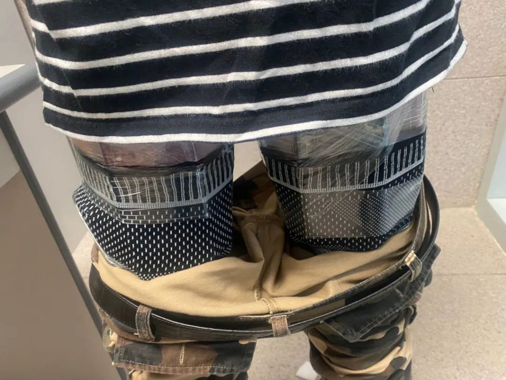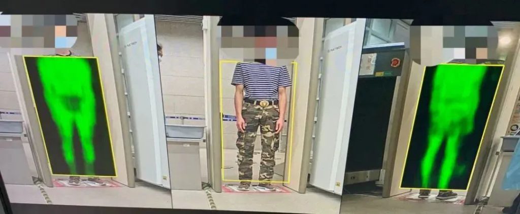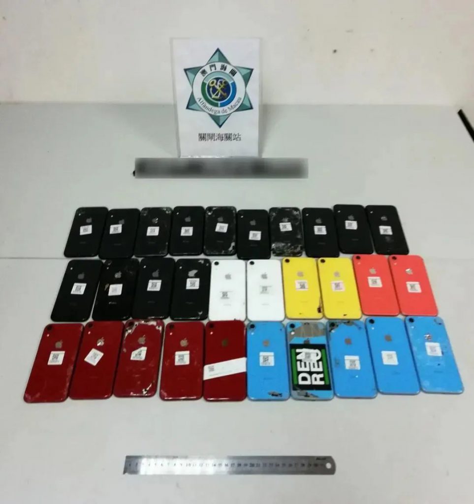 於11月10日傍晚,關員在關閘口岸出境旅客檢查區發現一名通關男子神色可疑,企圖混入人群中離境,懷疑其身上藏有可疑物品,遂指示該名男子接受檢查。關員利用太赫茲人體成像安檢系統作出檢視,發現有人利用保鮮紙將30部舊手提電話綁藏於大腿及小腿內側,試圖偷運出境。