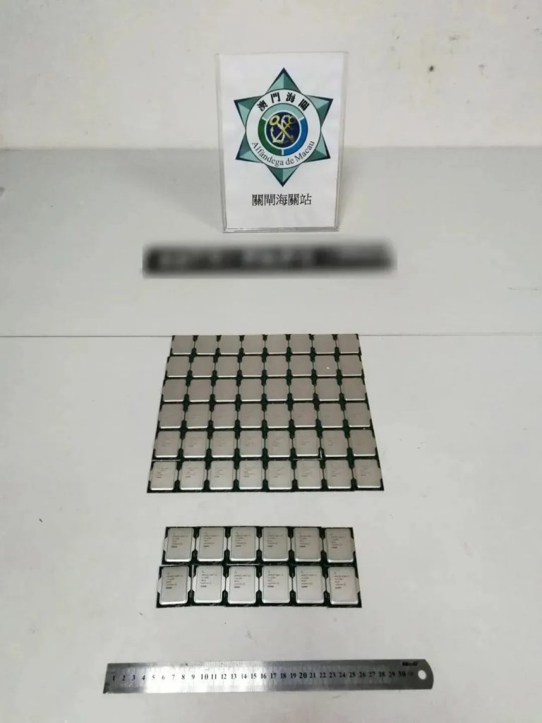 於11月12日下午,關員在關閘口岸出境旅客檢查區發現一名通關男子步姿異常,隨即對其進行截查,當場揭發其將60件電腦處理器收藏於鞋底夾層之中,試圖偷運出境。