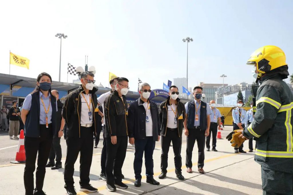 11月20日,保安司黄少泽司长、警察总局梁文昌局长、澳门海关黄文忠关长及消防局梁毓森局长等一众官员,到赛车场巡视安保工作的执行情况,慰问及勉励人员全力以赴,确保大赛车顺利举行。