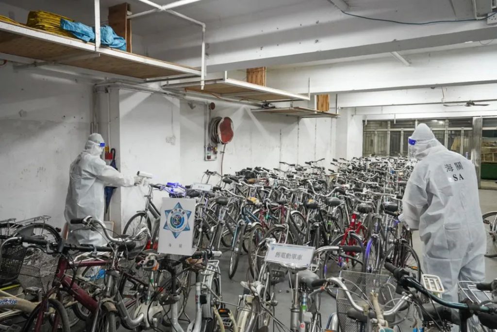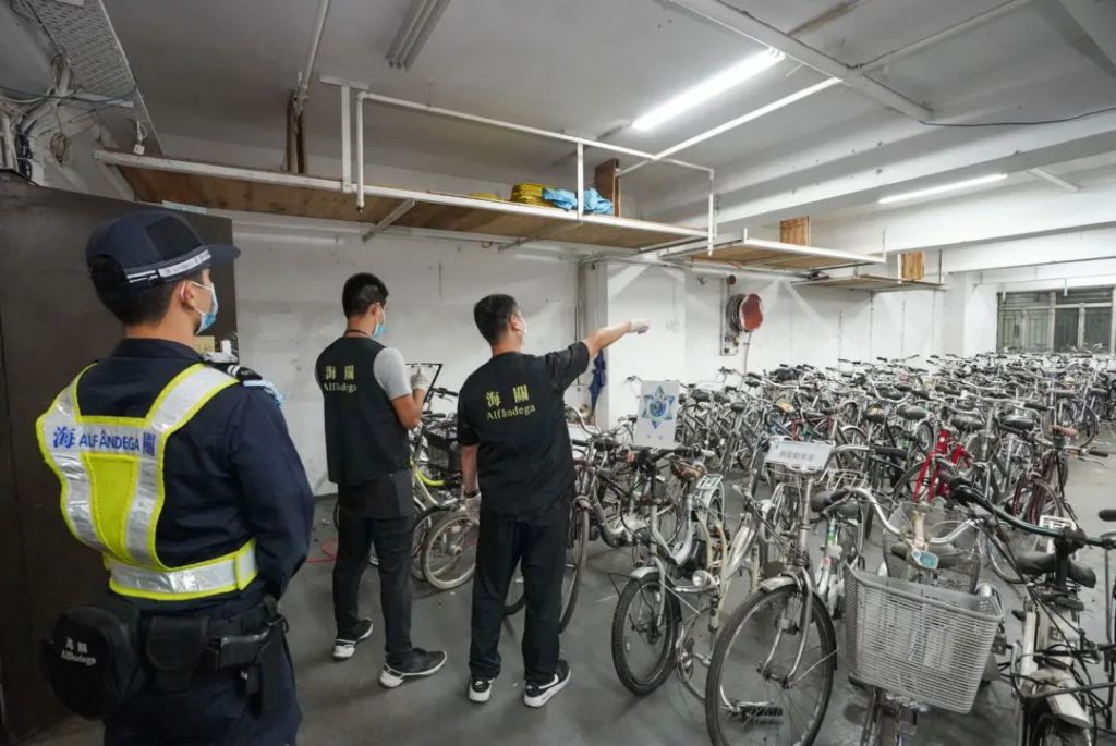 海關經過部署後見時機成熟,於本月21日下午對目標工廈單位採取突擊行動,現場查獲4名涉案人士進行水客活動,同時在單位內查獲舊單車170部及舊電動單車15部,估值約為2萬6千澳門元,全數不具備進出口申報文件及來源證明。為減低新冠病毒的傳播風險,海關根據防疫指引,對涉案貨物進行消毒。