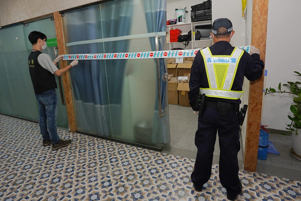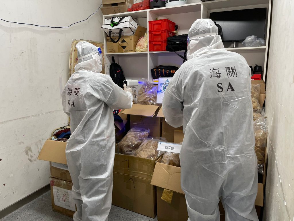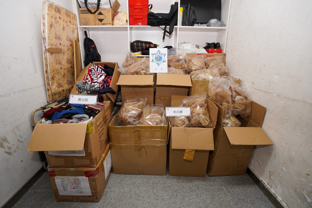 海关见时机成熟,即时对目标单位采取行动,在单位内查获1名女性现场负责人,以及旧衣服6箱和干花胶约41公斤,估值约为5万澳门元,涉案货物不具备进出口申报文件及来源证明。为减低新冠病毒的传播风险,海关根据防疫指引,对涉案货物进行消毒。