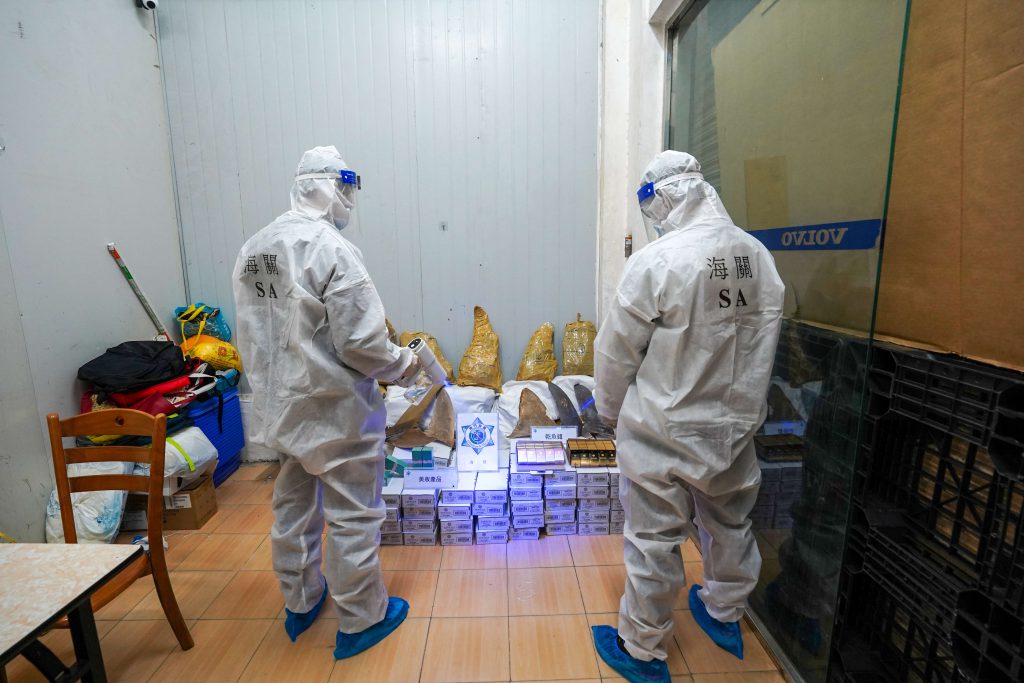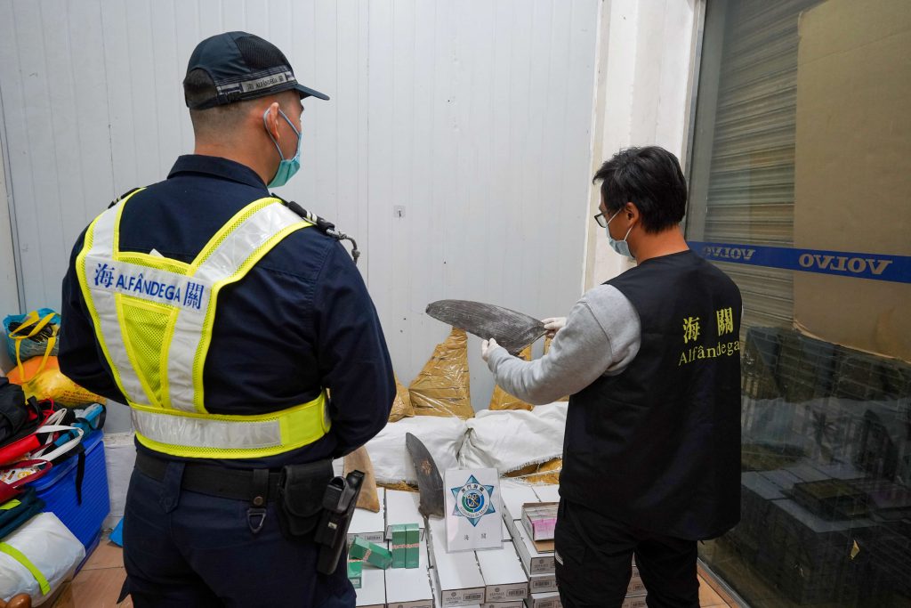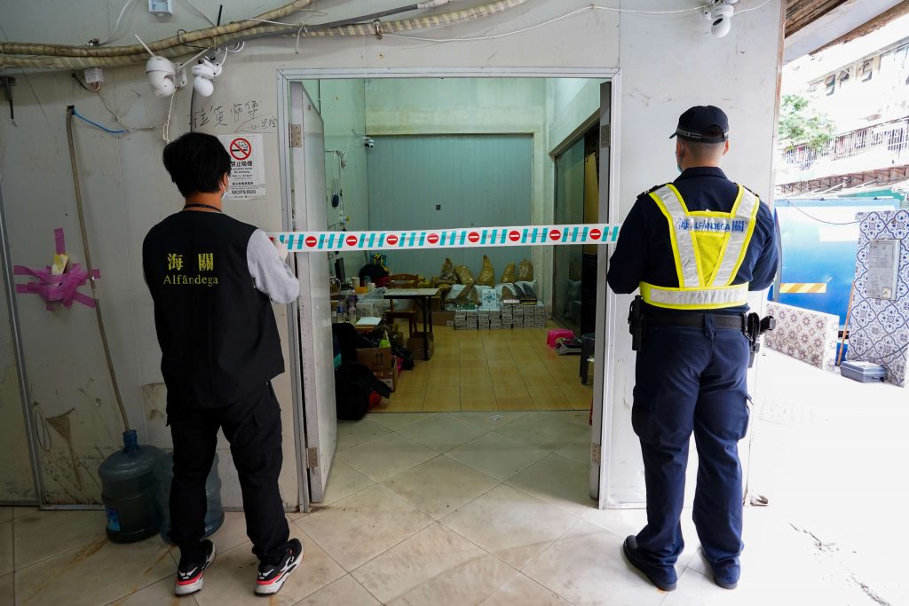 海关见时机成熟即时采取行动,在目标店铺内查获1名女性现场负责人,另有1名男性店铺企业负责人涉案。店铺内查获美妆产品约1,350件及干鱼翅52公斤,估值约为17万澳门元,相关货物不具备进出口申报文件及来源证明。为减低新冠病毒的传播风险,海关根据防疫指引,对查获的货物进行消毒。