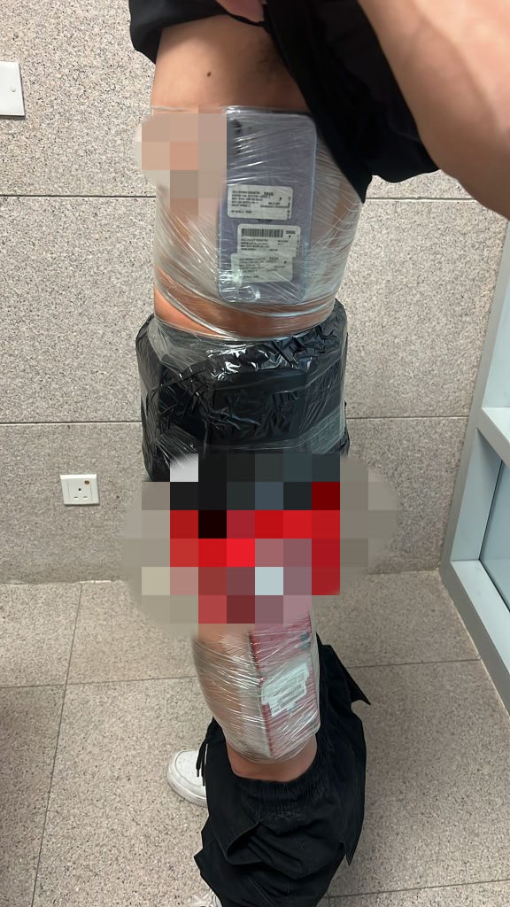 当中于12月5日早晚时段,海关在关闸旅客出境查验区一连截获3宗藏身偷运案件,涉案者利用保鲜纸将物品分别绑藏于腰间、大腿、小腿,或收藏于鞋底及裤袋,企图蒙混过关,均被口岸关员使用太赫兹人体成像安检系统详细检查后揭发。经查问,当中有人承认收取报酬协助他人将货物携带出境,海关将会继续循线追查幕后水客团伙,从多方位着手打击水客活动。