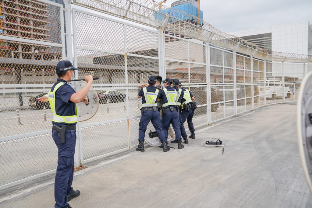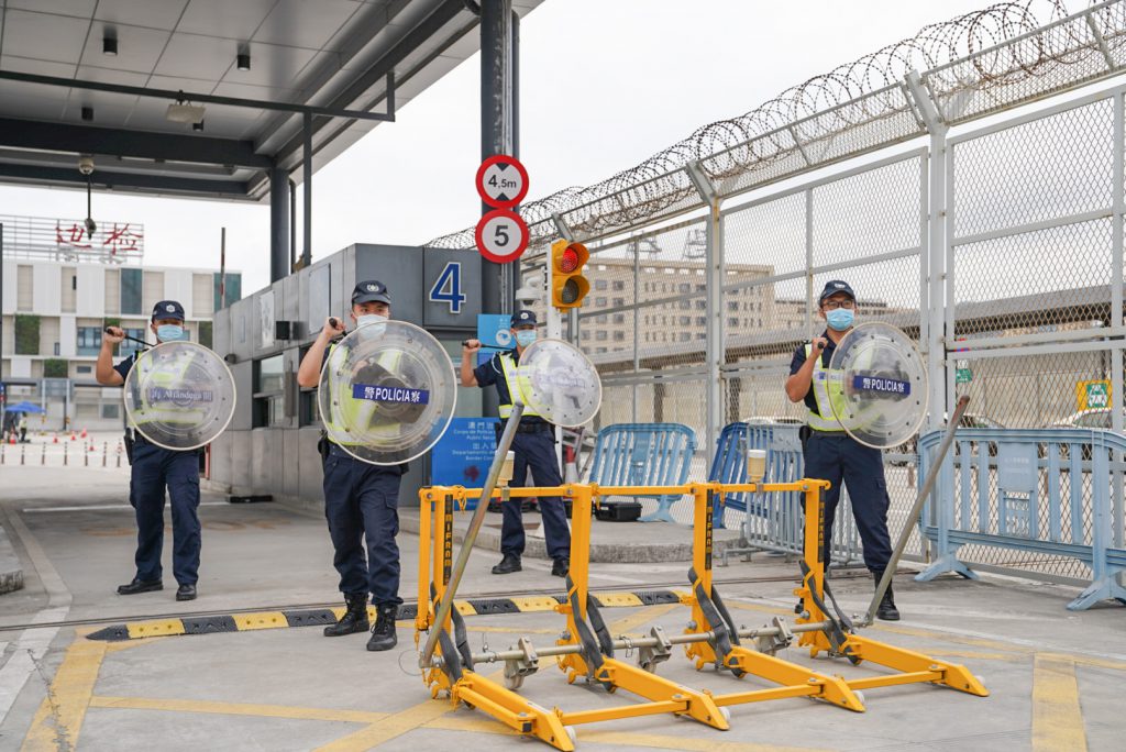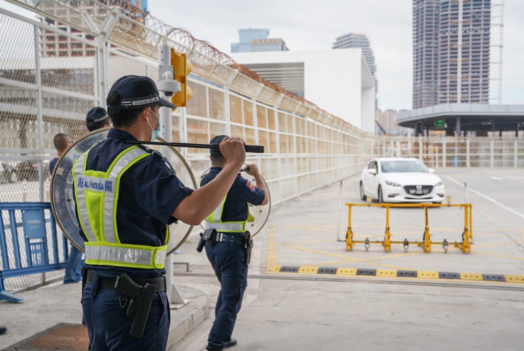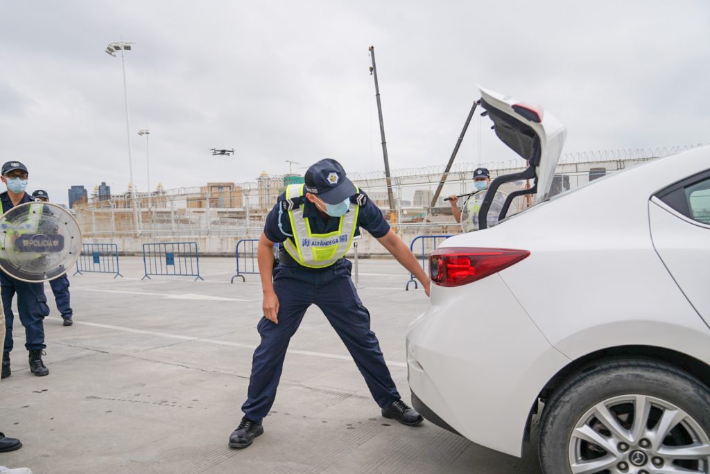 O Posto Fronteiriço Hengqin entrou em funcionamento há mais de dois anos, em virtude de aperfeiçoar a capacidade de tratamento para responder à entrada violenta de veículos e fazer a revisão em relação ao mecanismo de resposta conjunta ao incidente imprevisto bilateral, na manhã de 11 de Novembro, os SA e o CPSP realizaram no corredor de entrada do Posto Fronteiriço da Parte de Macau do Posto Fronteiriço Hengqin o “Exercício conjunto de simulação de entrada violenta de veículos em posto fronteiriço”.