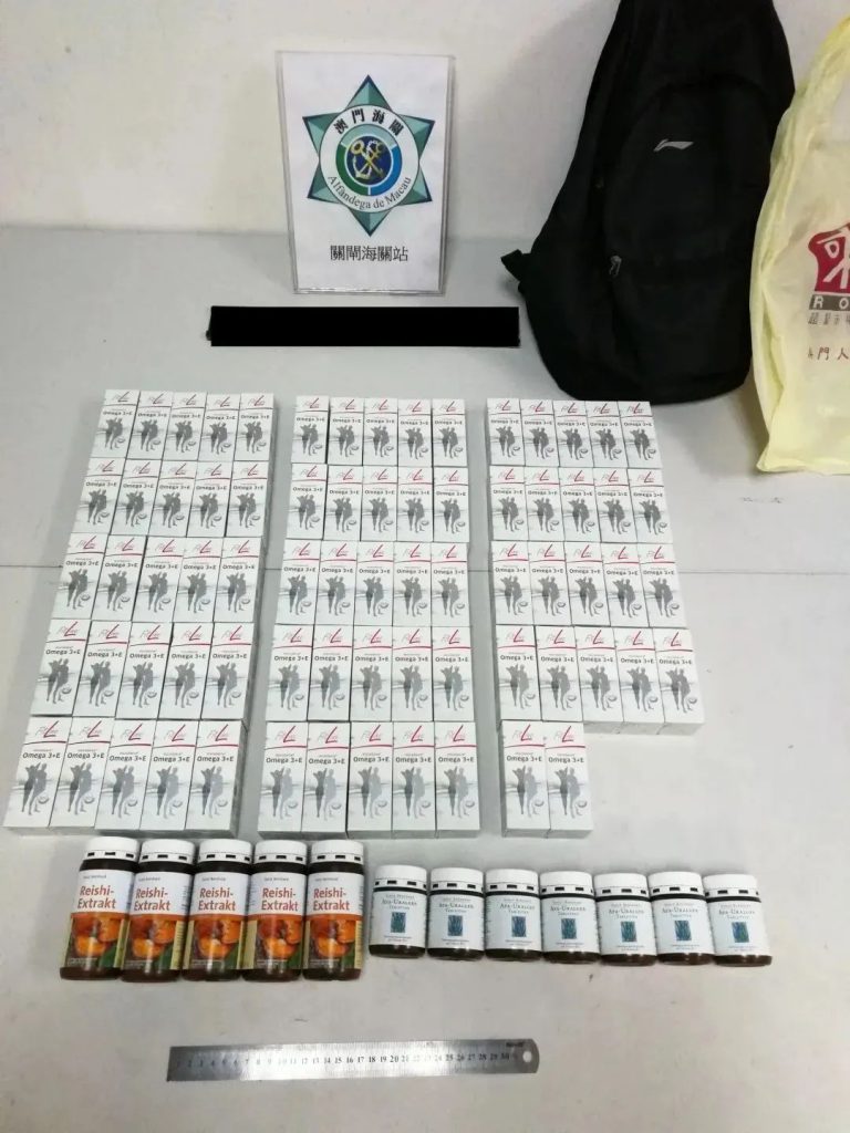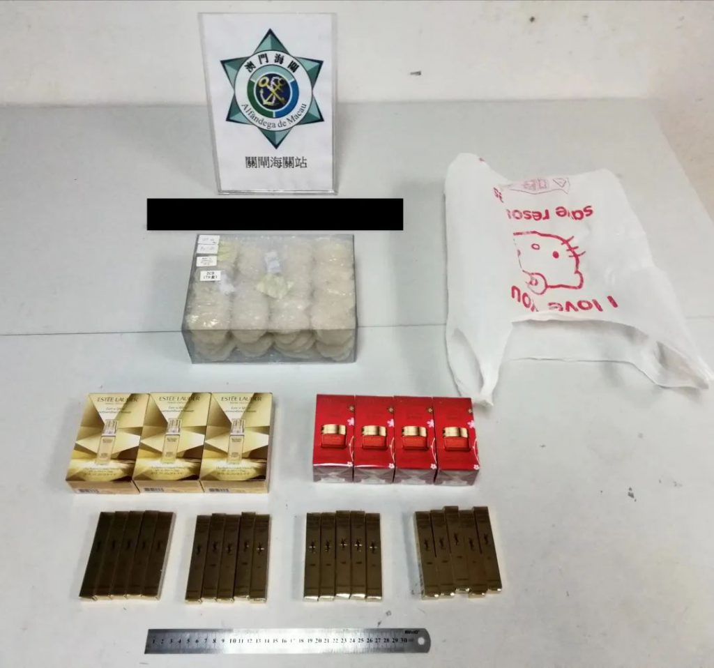 此外,于2022年12月28日至2023年1月2日期间,海关于关闸口岸截获共67宗利用背包及手提袋等随身物品将货物偷运出境个案,查获物品包括美妆产品1,030件、旧手提电话及屏幕37部、旧电子产品1部、游戏光盘20件、燕窝2.44公斤、保健品214件、酒类约14升、药物923件及打火机10个。