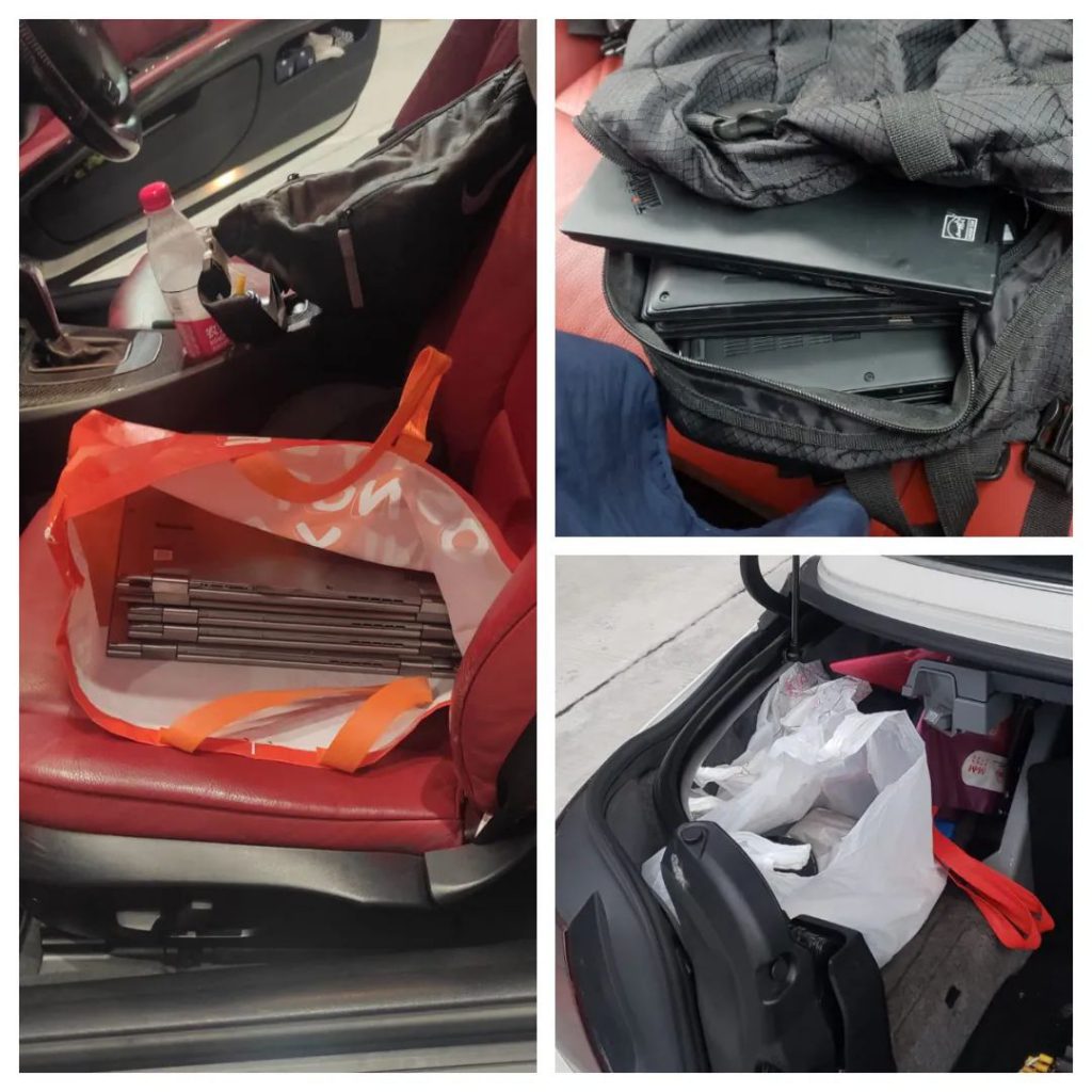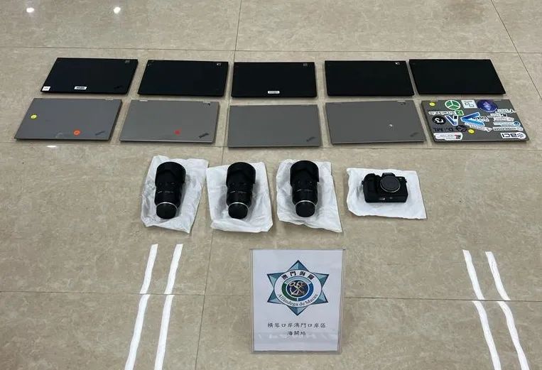 Na tarde do dia 12, os SA através da distribuição e controlo do sistema de gestão do risco, interceptaram e fiscalizaram um veículo de saída do Posto Fronteiriço de Hengqin, tentativa de contrabando para fora do país / para o Interior da China. Nesse período, foram encontrados 10 computadores portáteis usados, 1 câmara e 3 lentes de câmara escondidas no banco do passageiro, no banco traseiro e no porta-bagagens do veículo, na tentativa de contrabandeá-las para fora de Macau.