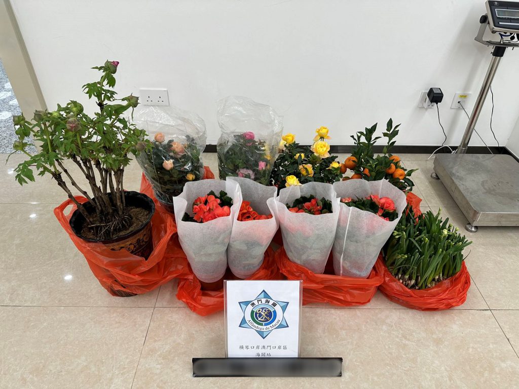 於17日下午,海關根據風險管理系統的預警佈控,截查一輛經橫琴口岸入境澳門的兩地牌車,海關人員發現車輛後座位置及車尾箱分別放有10盆植物,企圖運入澳門。