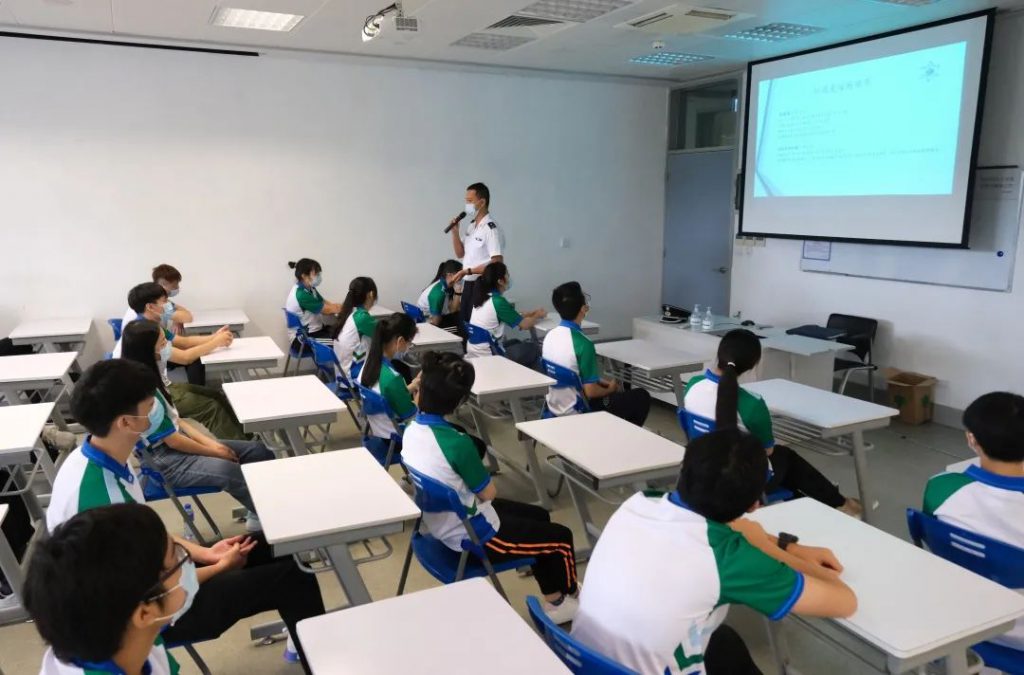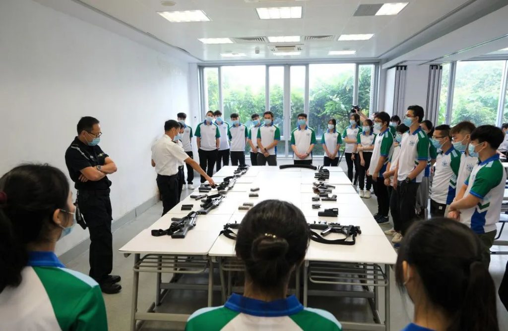 Sob a situação das bem tomadas medidas de prevenção epidémica, os formandos chegaram à Escola Superior das Forças de Segurança de Macau para visitarem o campo de treino, presenciaram ainda a cerimónia do içar da bandeira e conhecerem a respectiva exigência e protocolo; os verificadores da linha da frente apresentaram também os equipamentos e as instruções utilizados na prestação de serviço quotidiano, a visita enriqueceu o conhecimento dos formandos sobre o trabalho de execução das leis dos SA. De seguida, os SA realizaram o seminário de divulgação das leis, no qual apresentaram o trabalho de execução das leis sobre a protecção do direito de propriedade intelectual e a respectiva legislação, divulgando a importância da protecção de direito de propriedade intelectual; os formandos visitaram ainda o Posto Alfandegário de Macau da Ponte Hong Kong-Zhuhai-Macau e o Departamento de Fiscalização Alfandegária para compreender os diferentes tipos de equipamentos de fiscalização aduaneira e a situaçao de execução das leis na área marítima de jurisdição do território. Os SA organizaram os formandos participantes para ver em conjunto a exposição fotográfica online de “Segurança nacional no campus” para que os formandos pudessem compreender a importância de manter a segurança nacional, o sentido de conhecer com exactidão a segurança nacional e apoiar o trabalho de manutenção da segurança nacional e segurança territorial.